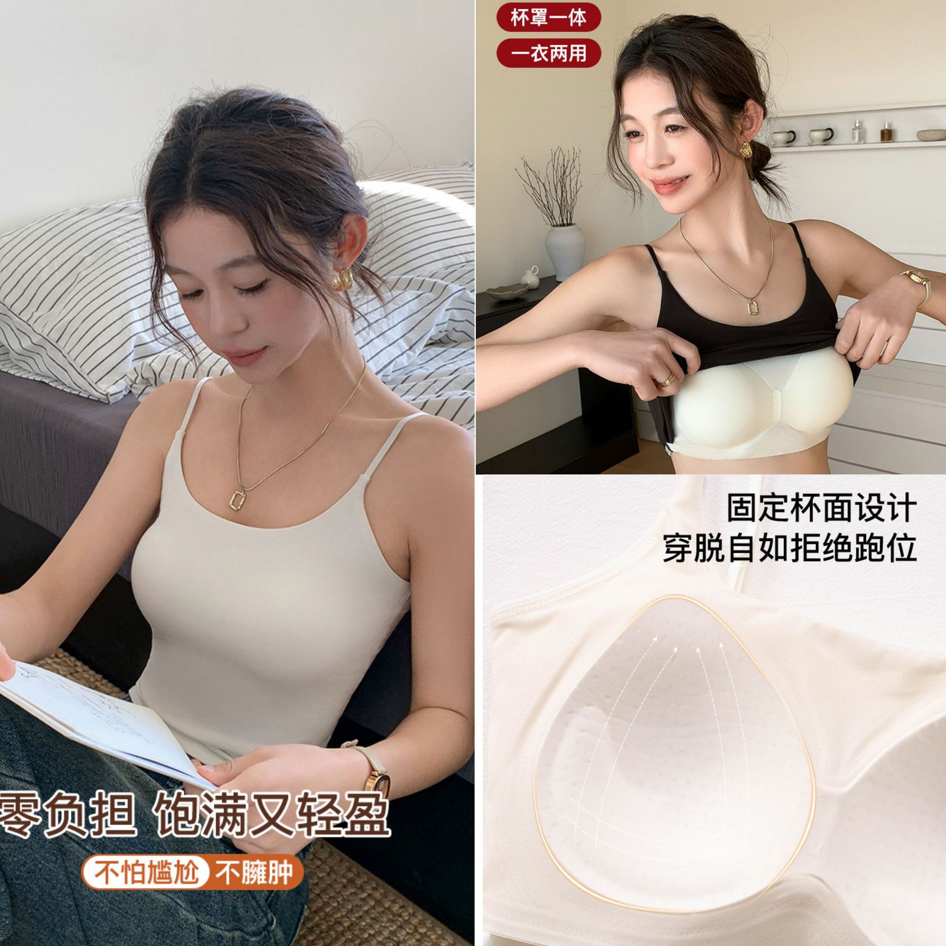 8839-2 컵 조끼가있는 얇은 어깨 스트랩 여자 여름 외부 착용 브래지어없는 유방 슬림없는 탑스토어 가기