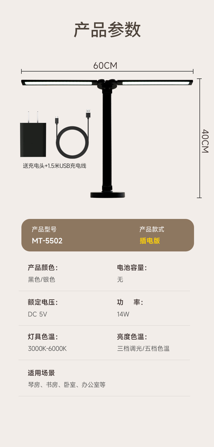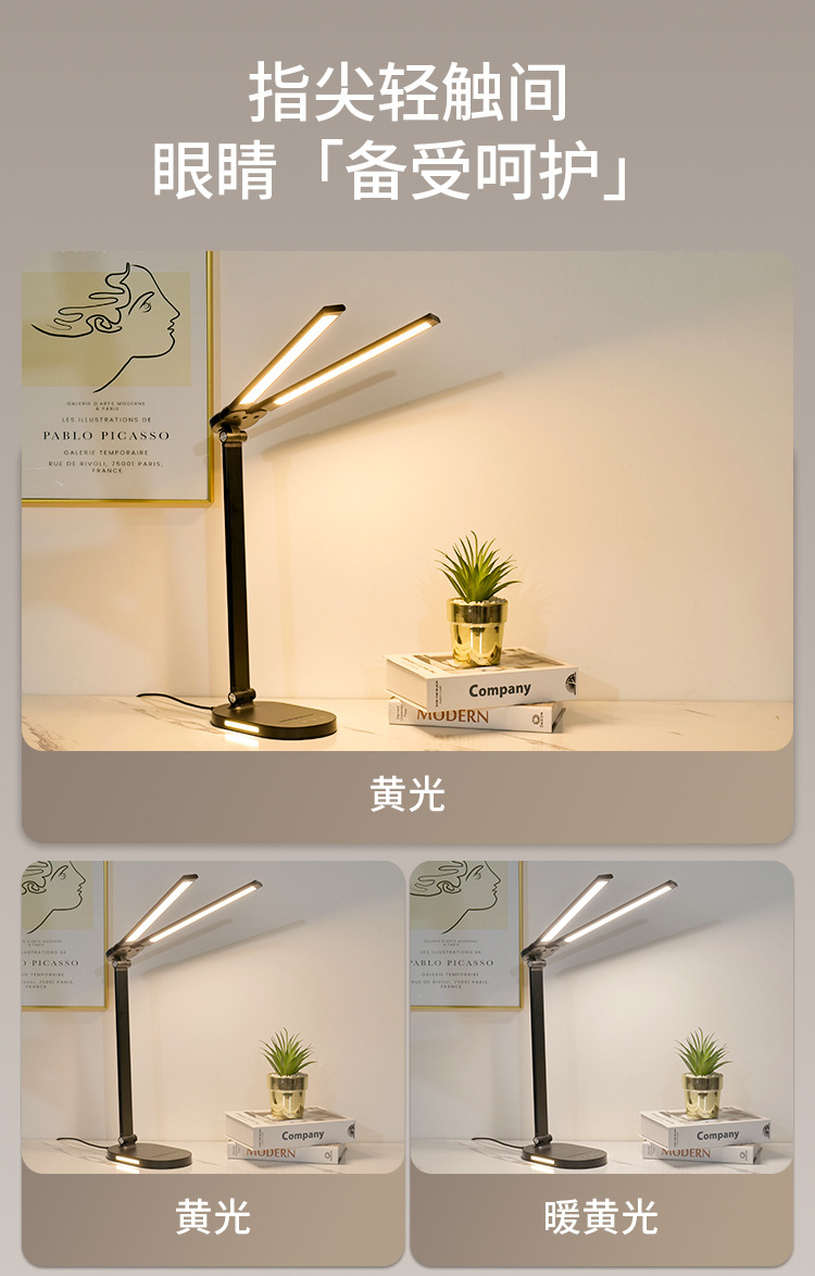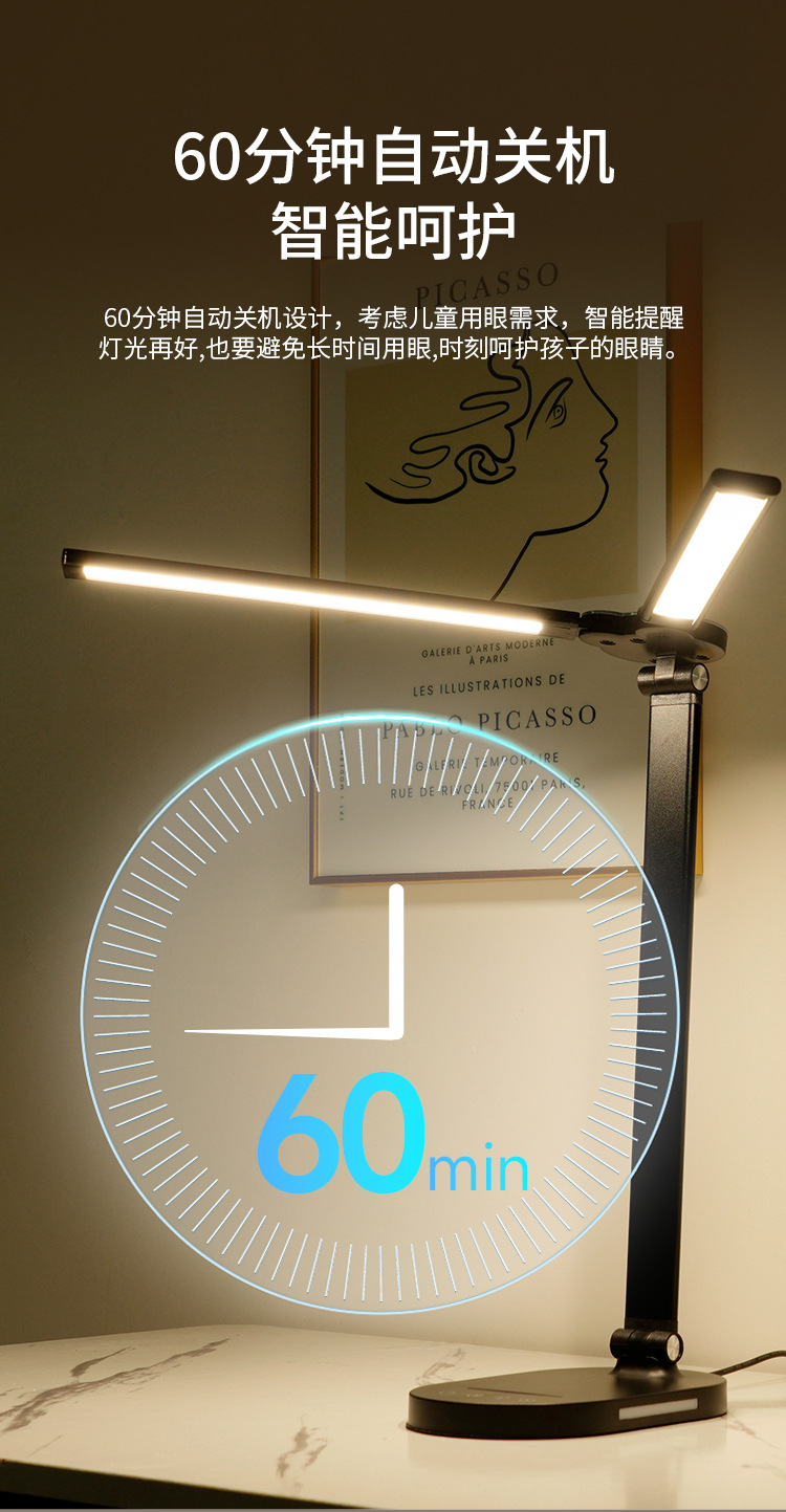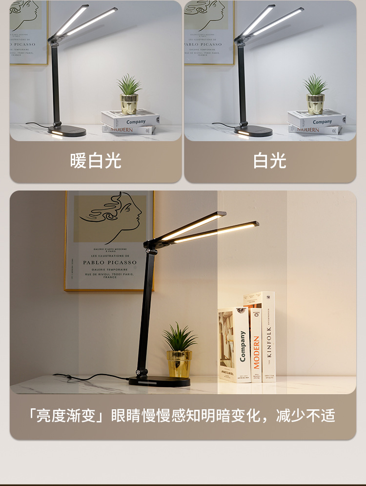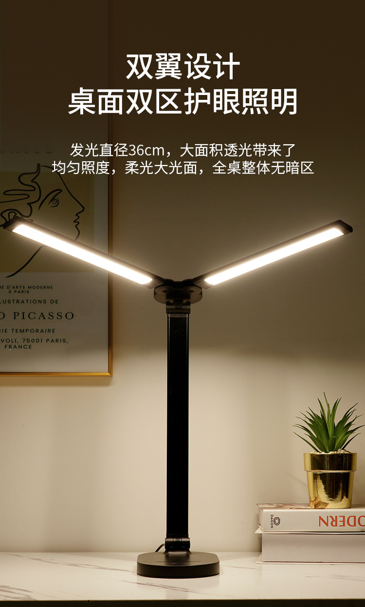 양방향 피아노 AA급 눈 보호 LED 램프, 학생 기숙사 침실 독서 및 학습용 책상 램프, 밝기 조절 가능스토어 가기