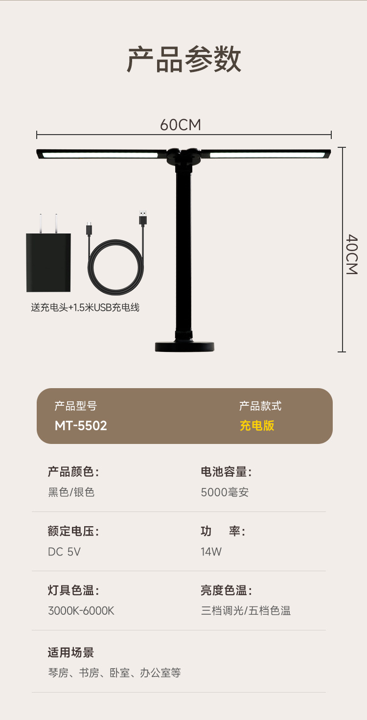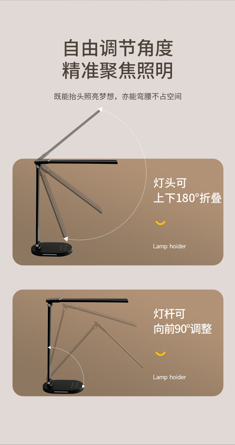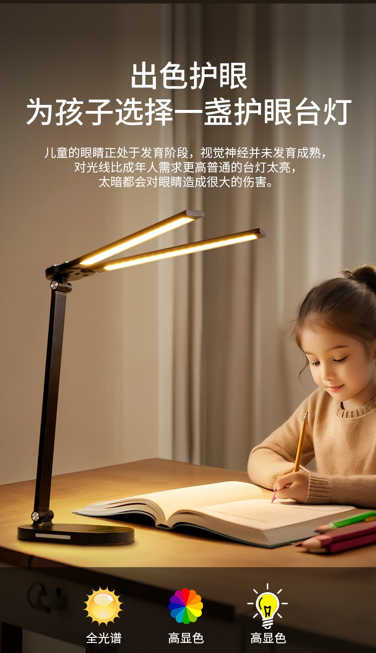 양방향 피아노 AA급 눈 보호 LED 램프, 학생 기숙사 침실 독서 및 학습용 책상 램프, 밝기 조절 가능
