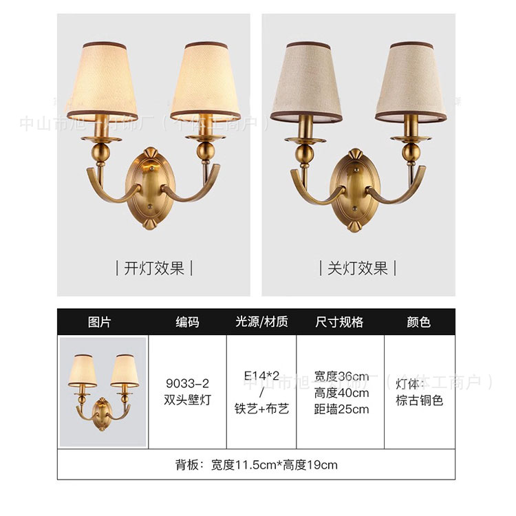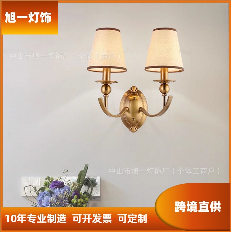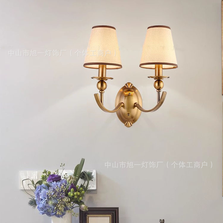 아메리칸 스타일 벽 램프 간단한 거실 TV 배경 벽 복도 조명 침실 침실 램프 더블 헤드 패브릭 무료 배송