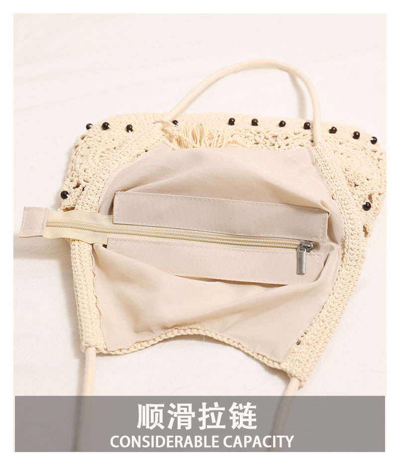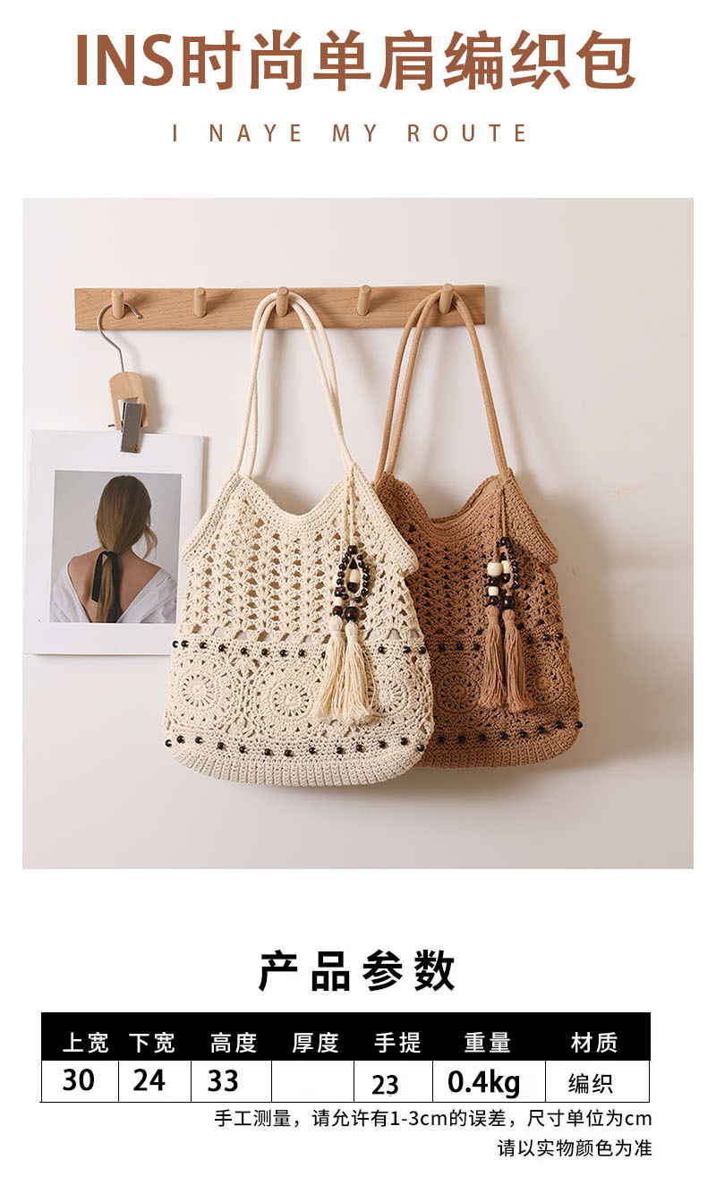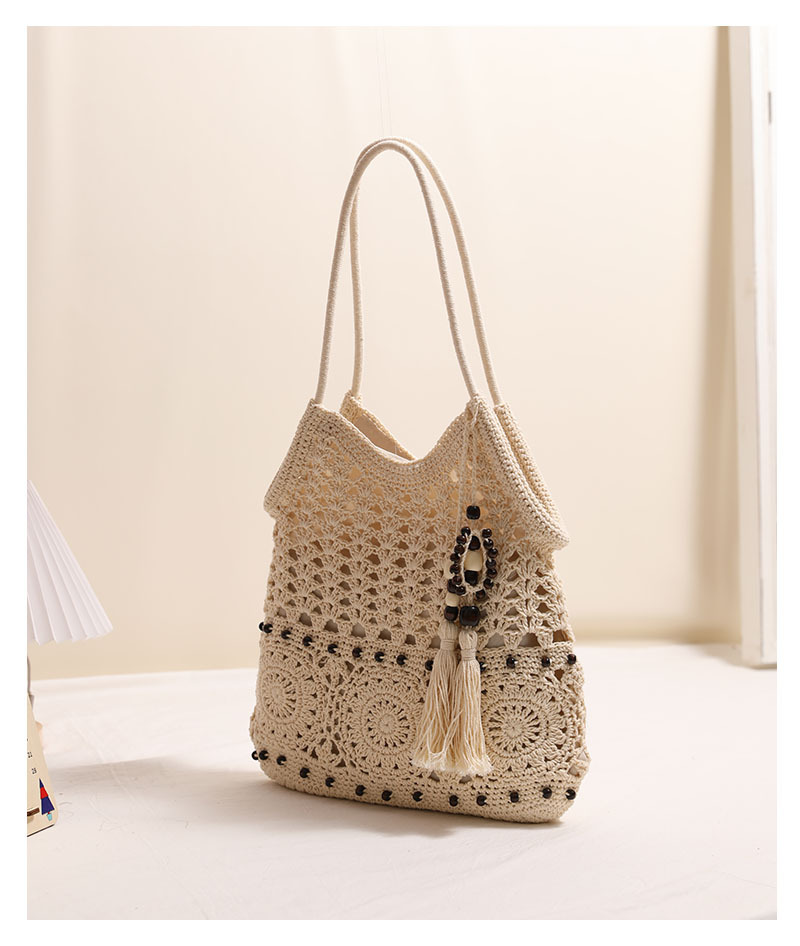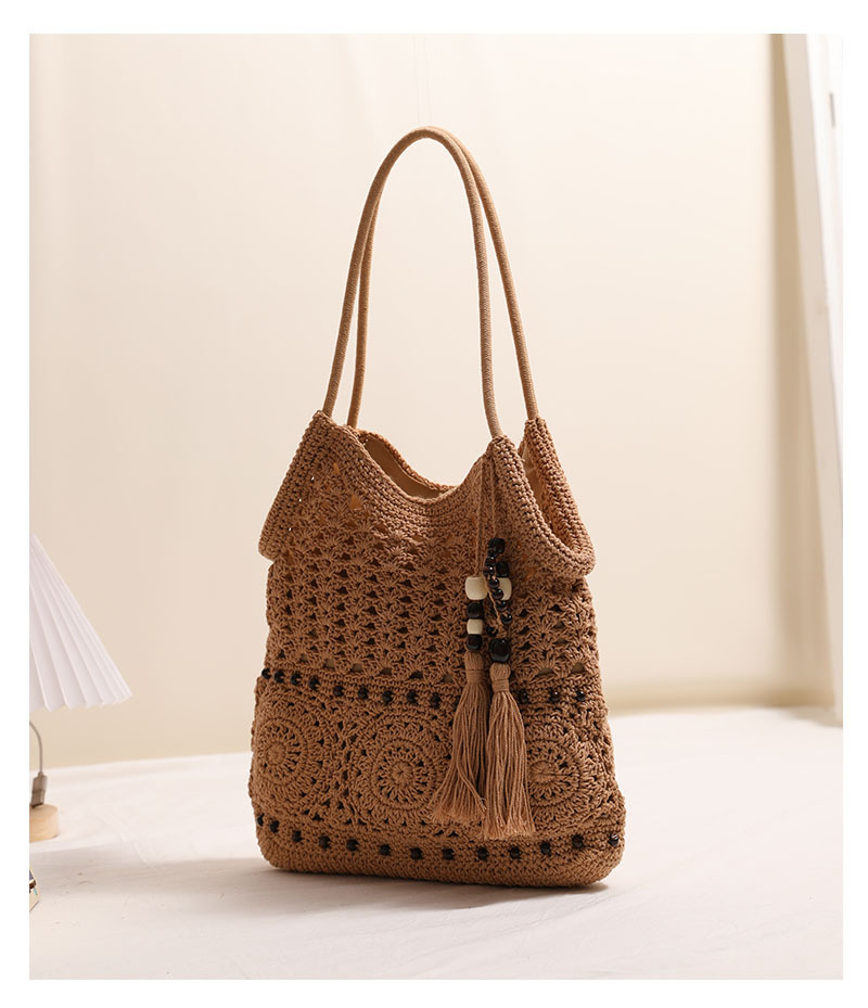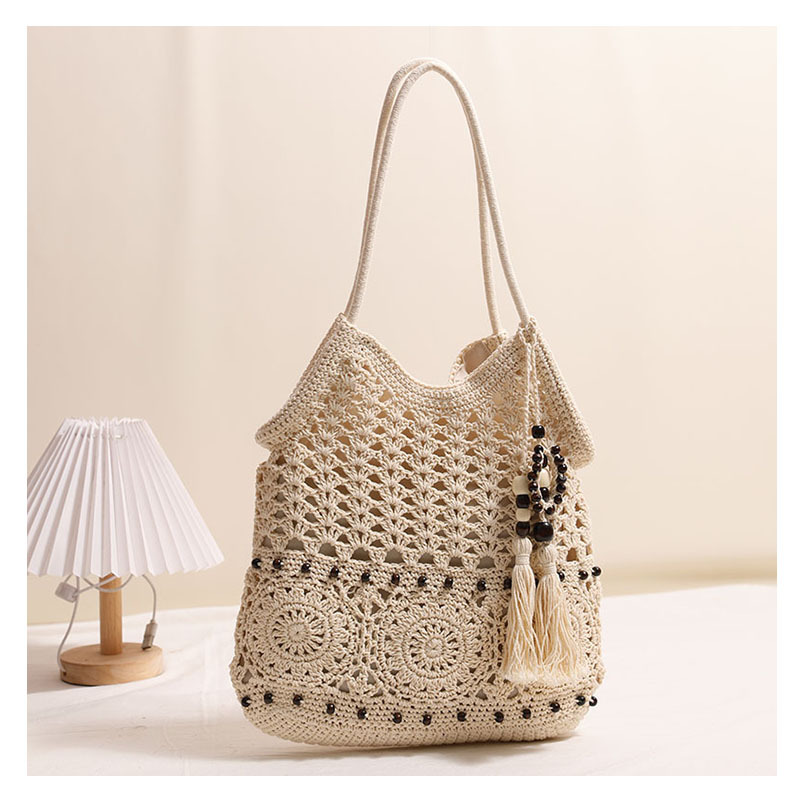 나무 구슬 장식 숄더백, 면사로 짠 가방, 새로운 디자인의 빈티지 밀짚 가방, 해변 가방, 다용도 여성 가방, 휴가용스토어 가기