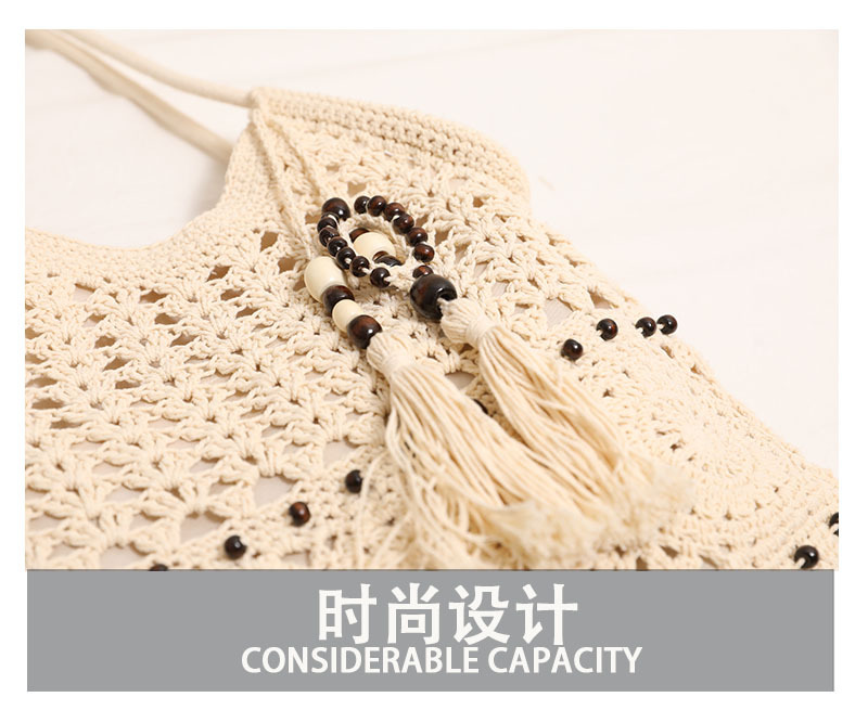 나무 구슬 장식 숄더백, 면사로 짠 가방, 새로운 디자인의 빈티지 밀짚 가방, 해변 가방, 다용도 여성 가방, 휴가용