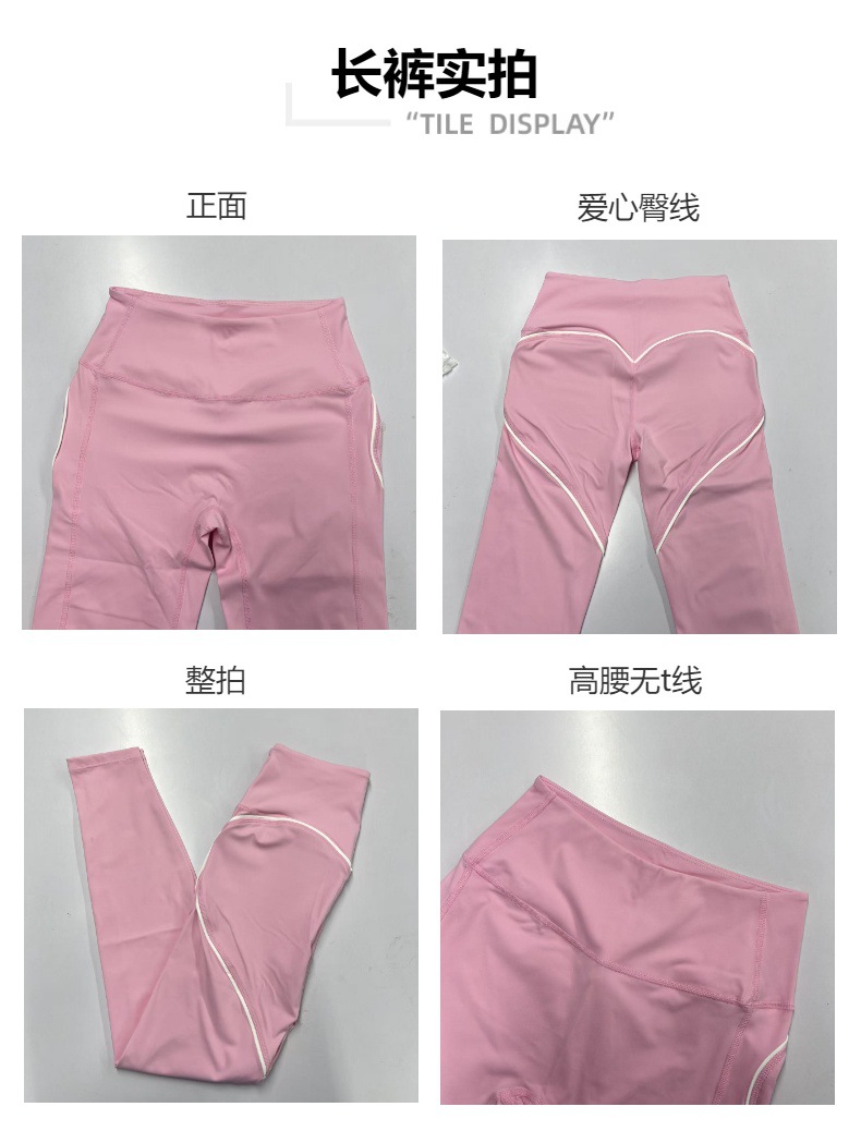 유럽 및 미국 스타일의 누드 느낌 요가 세트, 통기성과 충격 방지 기능을 갖춘 스포츠 탑, 하트 모양 힙업 9부 팬츠, 피트니스 세트