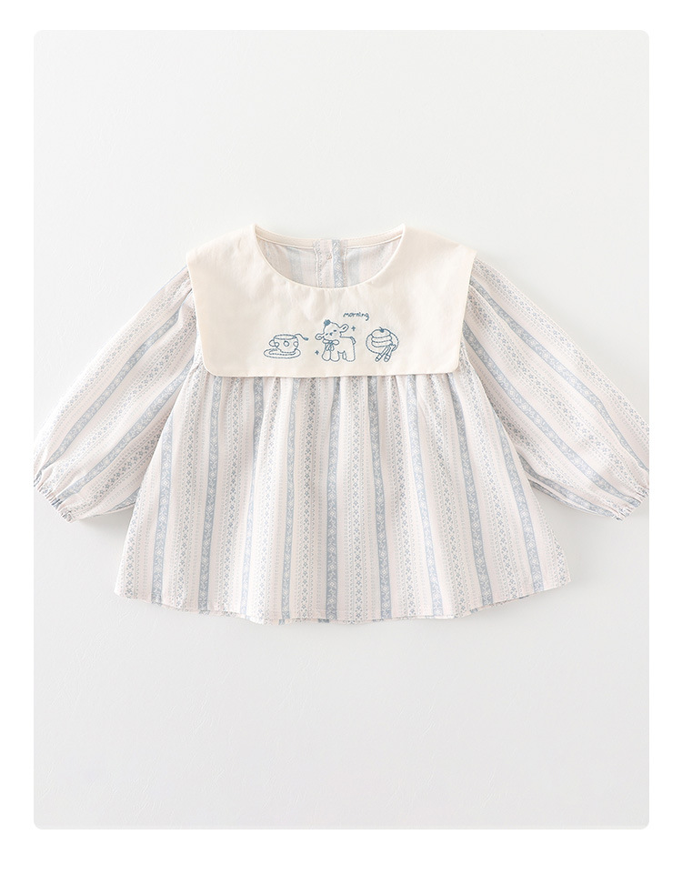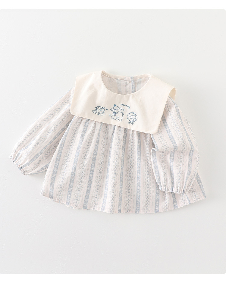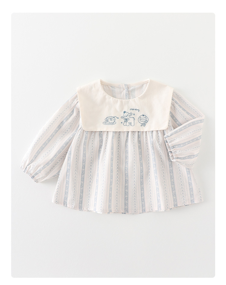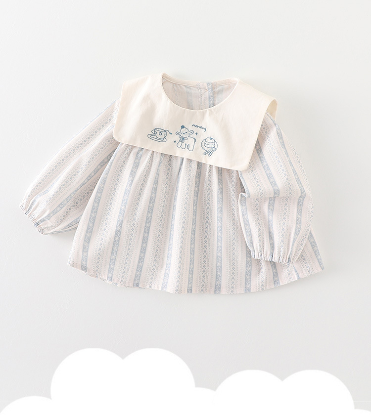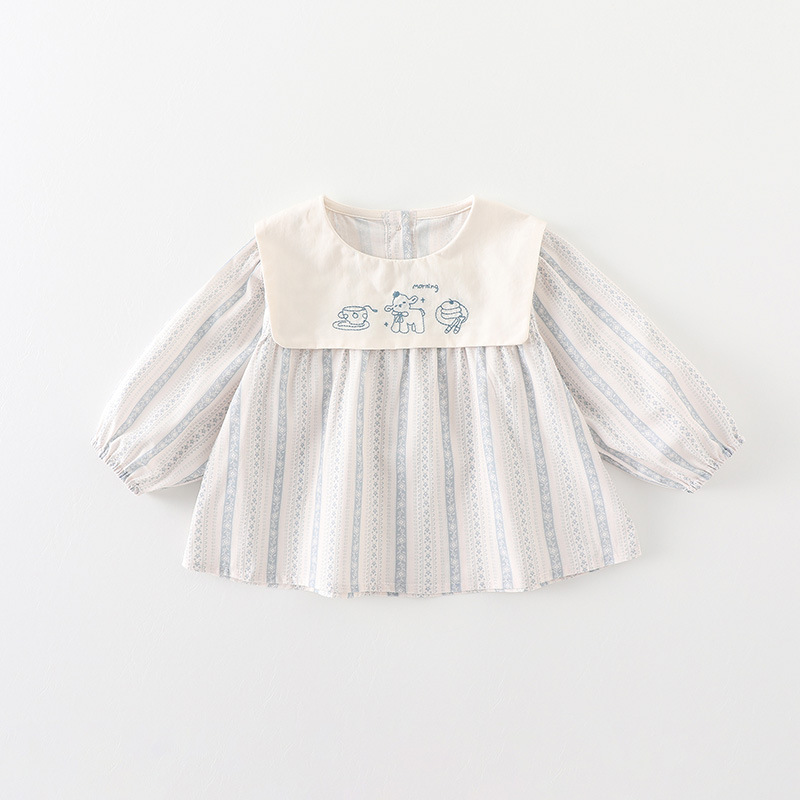 아기의 봄 톱 2025 새로운 소녀 긴팔 티셔츠 봄과 가을 귀여운 인형 칼라 아기베이스 셔츠 카테고리 A스토어 가기