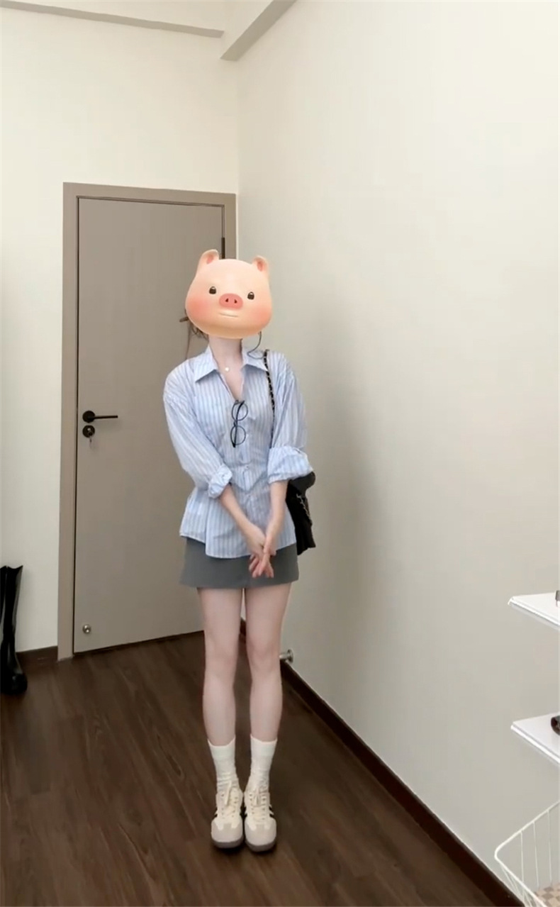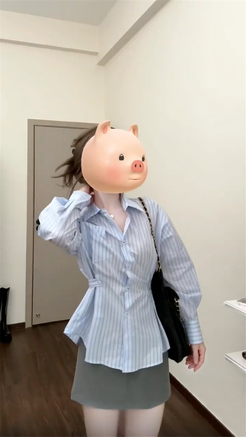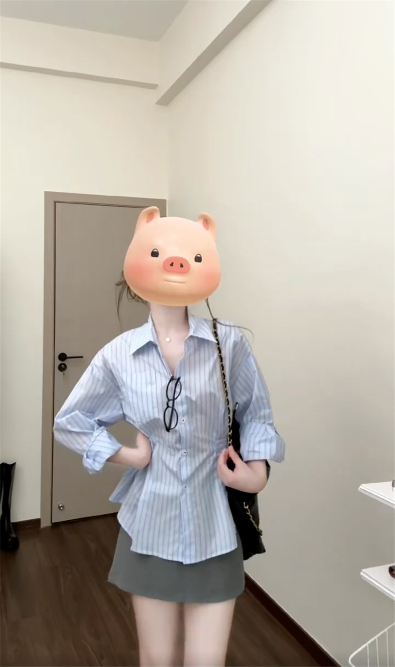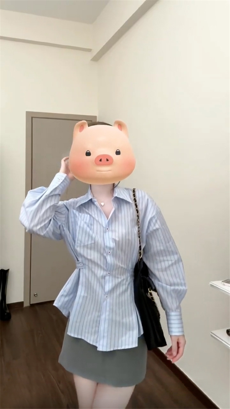 2025 년 초 가을 새로운 프랑스 스타일 독특한 아름다운 푸른 줄무늬 셔츠 여성의 하이 엔드 센스 셔츠 허리 긴팔 탑스토어 가기