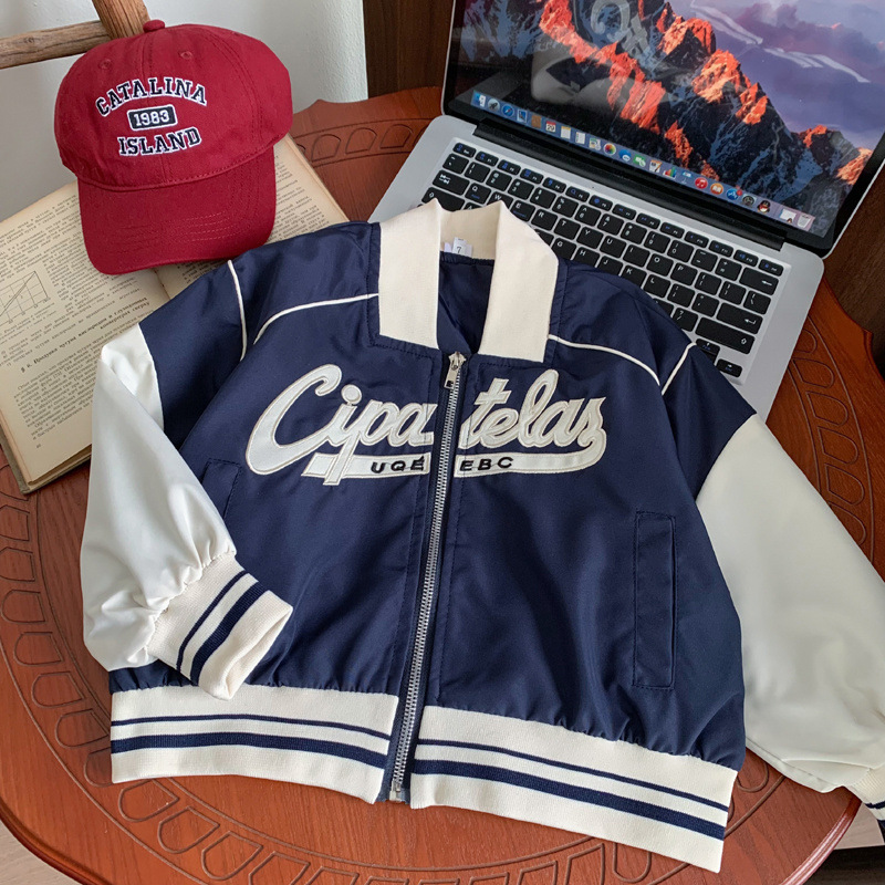 일본 어린이 자수 알파벳 야구 세트 하이 스트리트 재킷 2025 봄과 가을 새로운 잘 생긴 파일럿 재킷