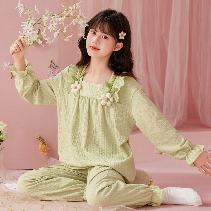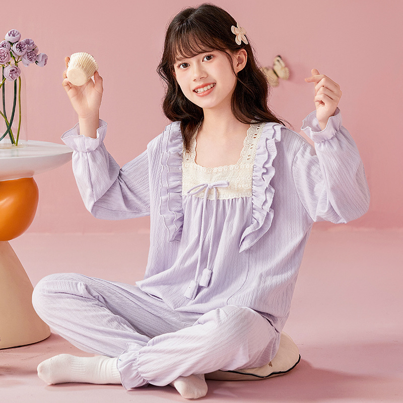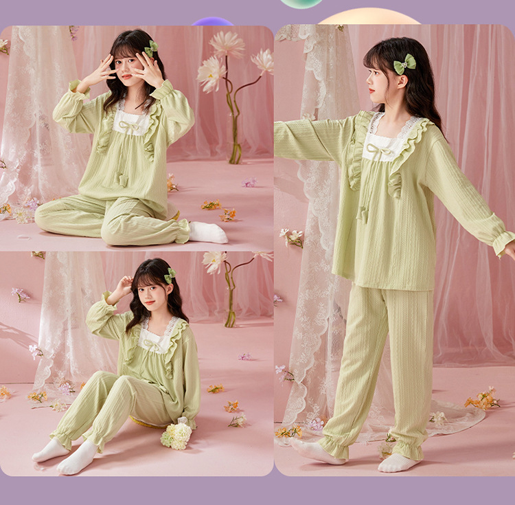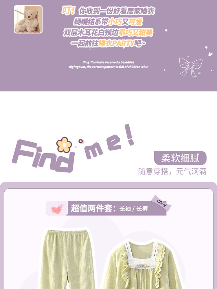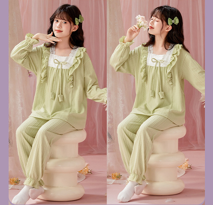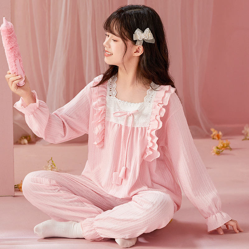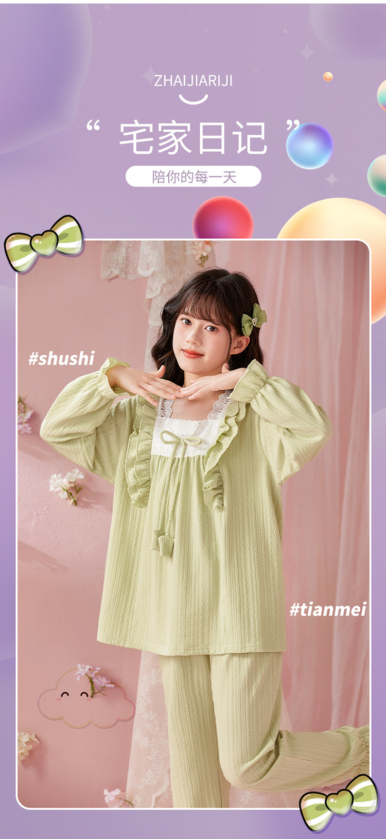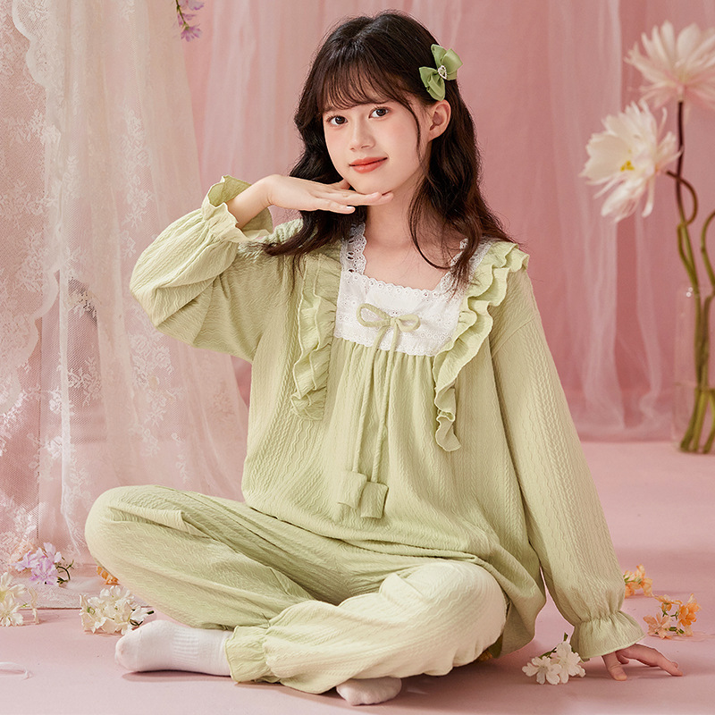국경 간 아동복 소녀 잠옷 2025 새로운 어린이 봄과 여름 달콤한 귀여운 공주 에어컨 홈 의류 세트