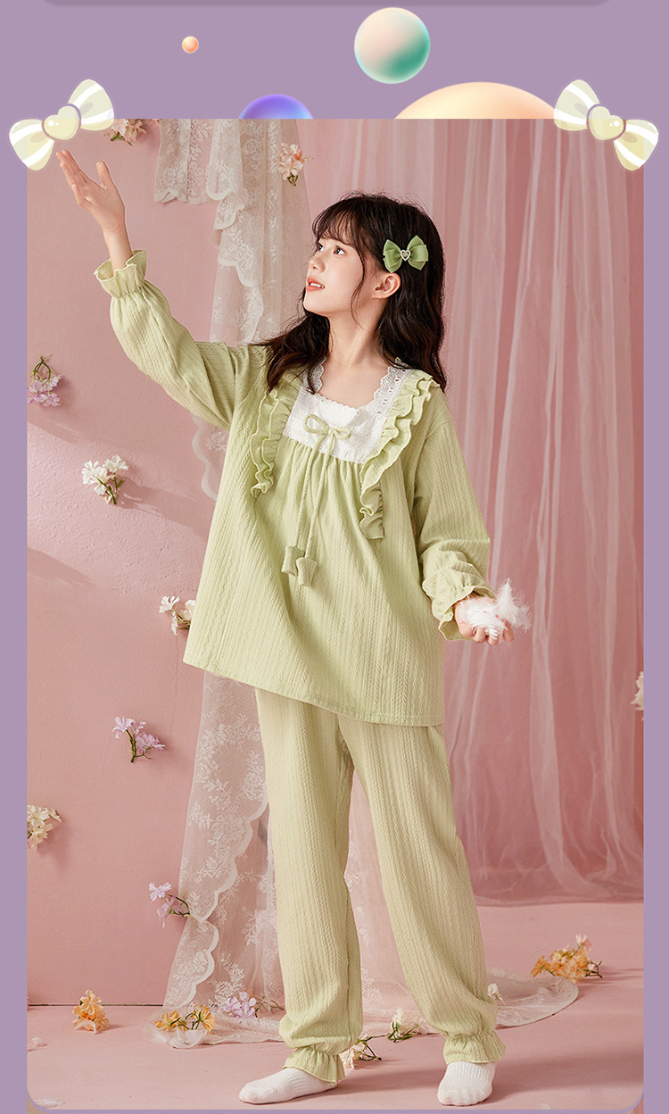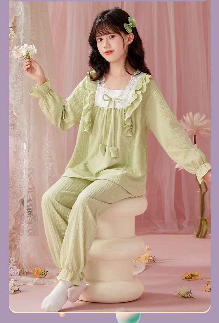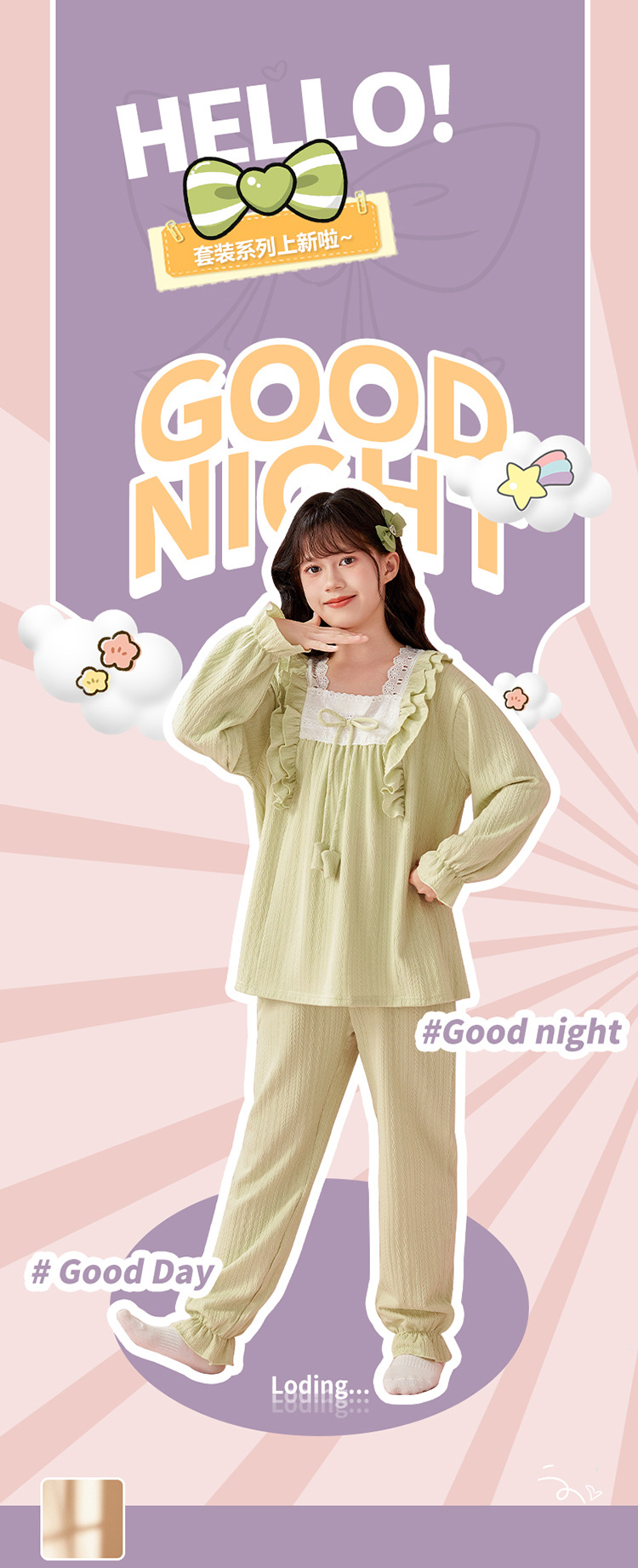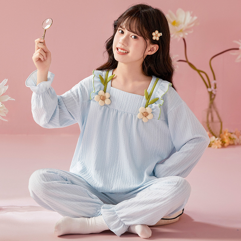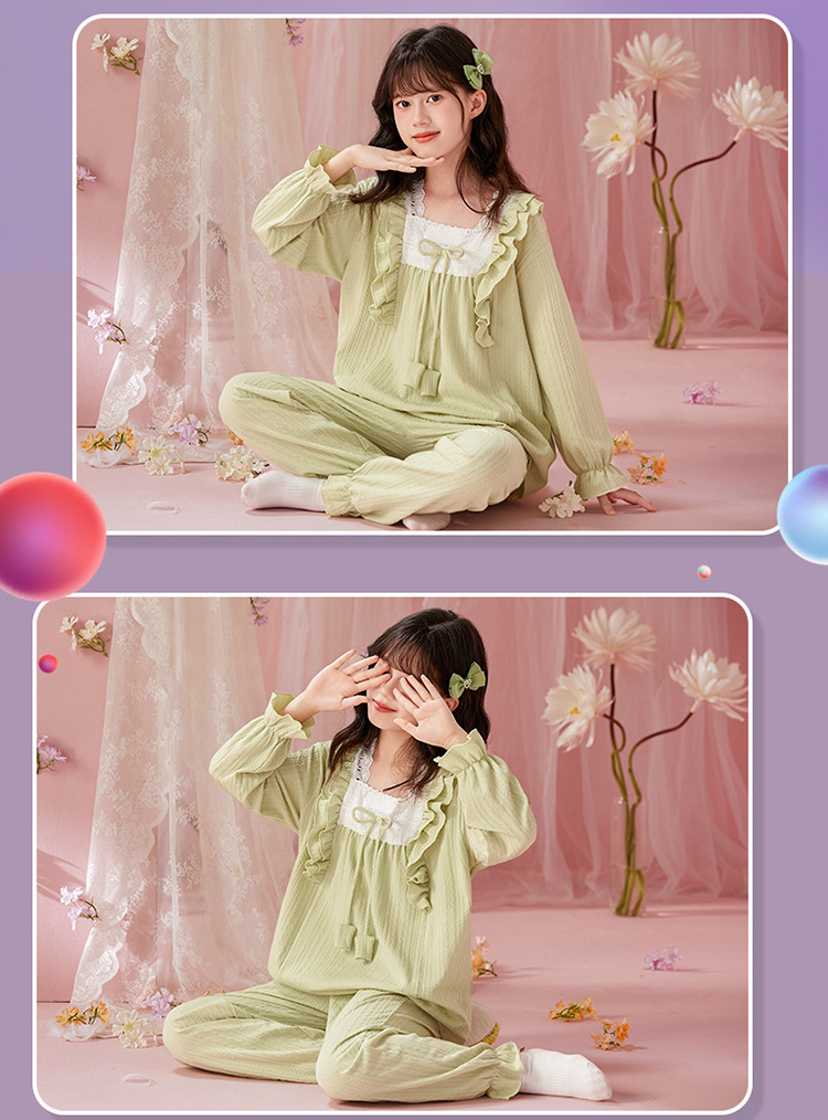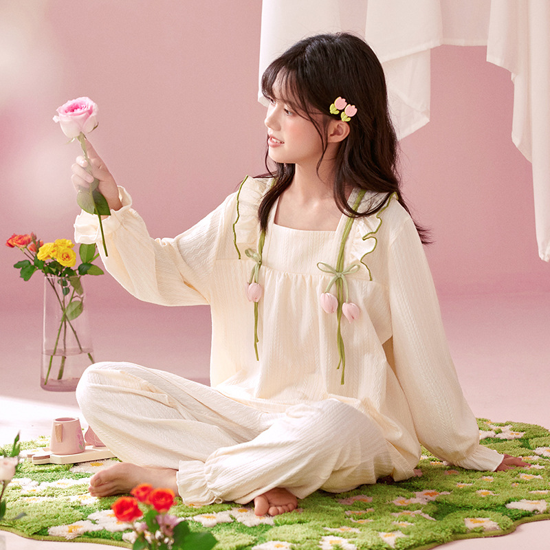국경 간 아동복 소녀 잠옷 2025 새로운 어린이 봄과 여름 달콤한 귀여운 공주 에어컨 홈 의류 세트