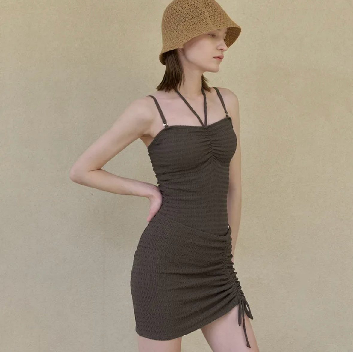 한국 인 스타일 새로운 섹시 레트로 긴 소매 슬링 간단한 원피스 분리 가능한 원피스 수영복 여성용 3 피스 세트스토어 가기