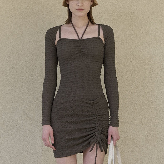 한국 인 스타일 새로운 섹시 레트로 긴 소매 슬링 간단한 원피스 분리 가능한 원피스 수영복 여성용 3 피스 세트