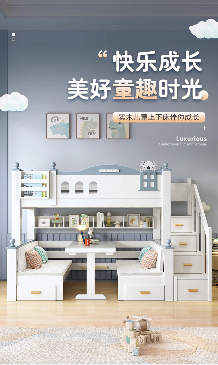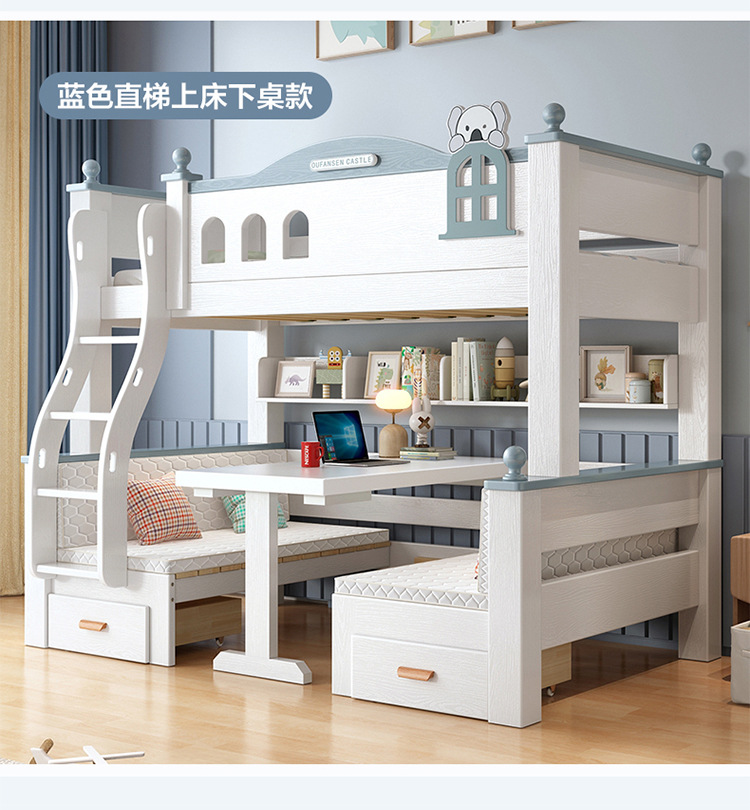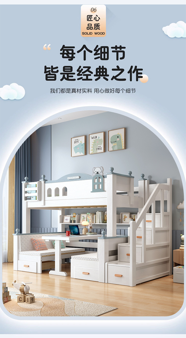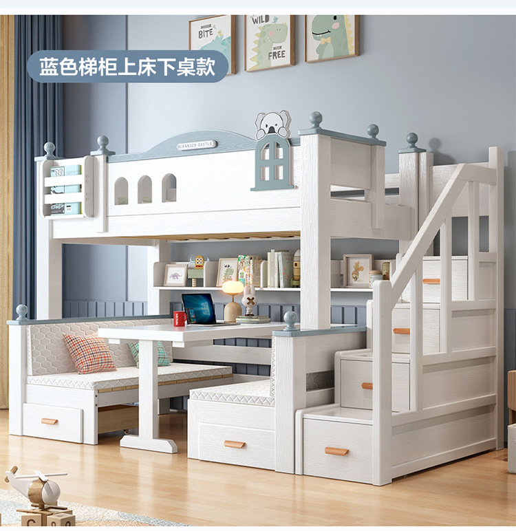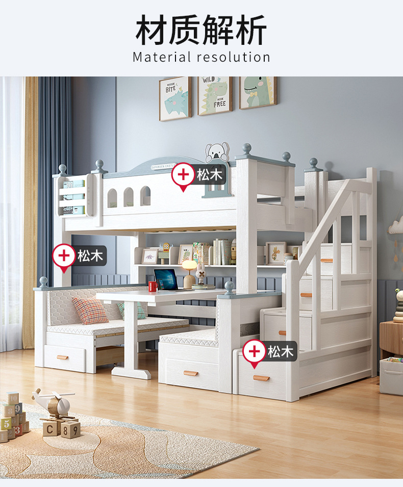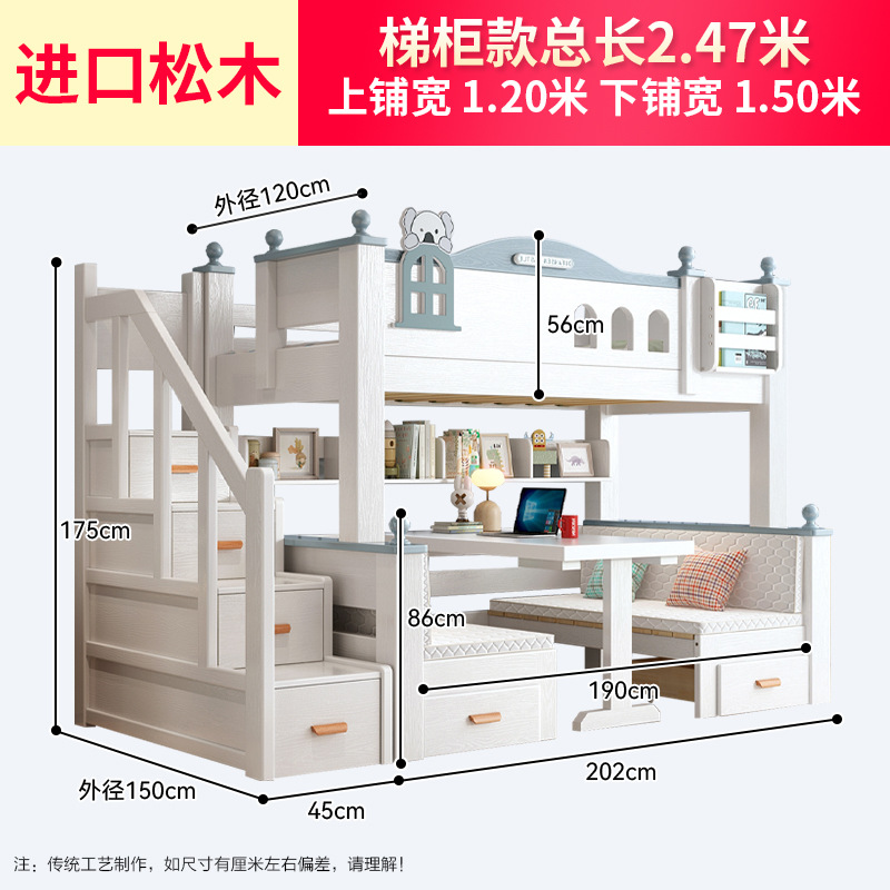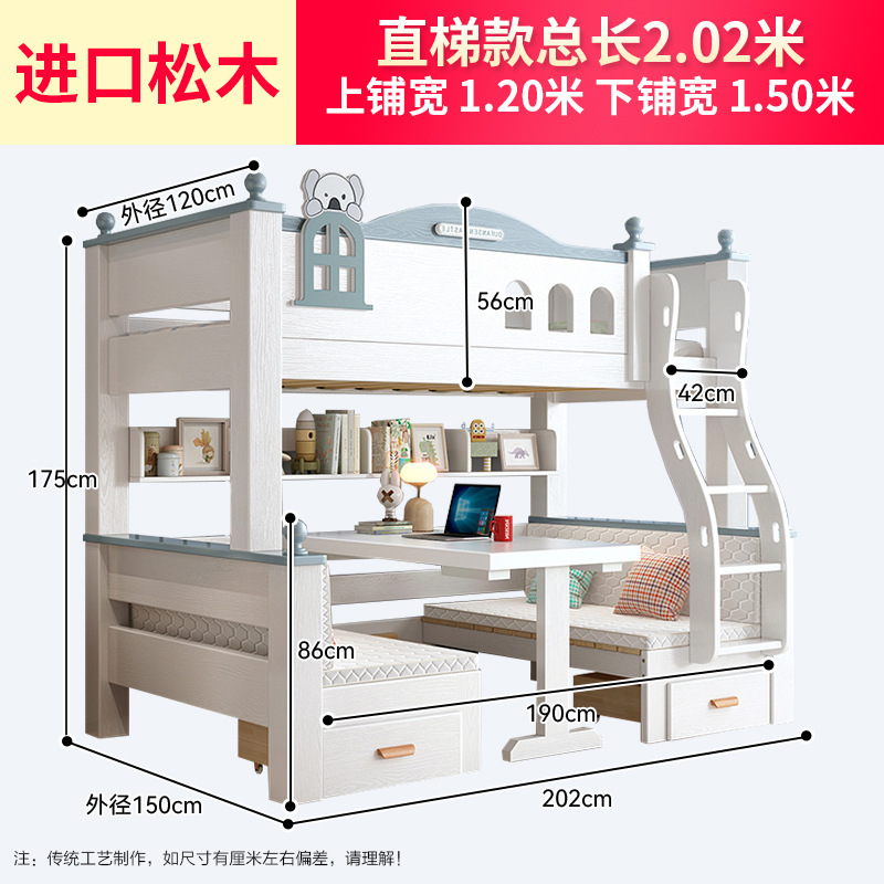 이층 침대 이층 침대 다기능 이층 침대 풀 솔리드 우드 높고 낮은 침대 어린이 침대 어린이 침대 성인 2 층 나무 침대스토어 가기