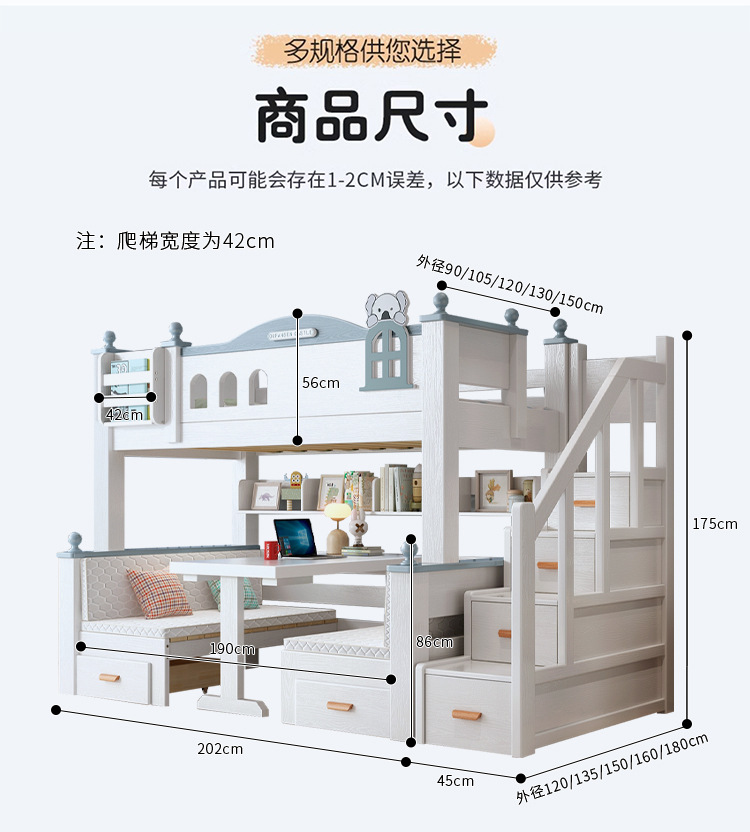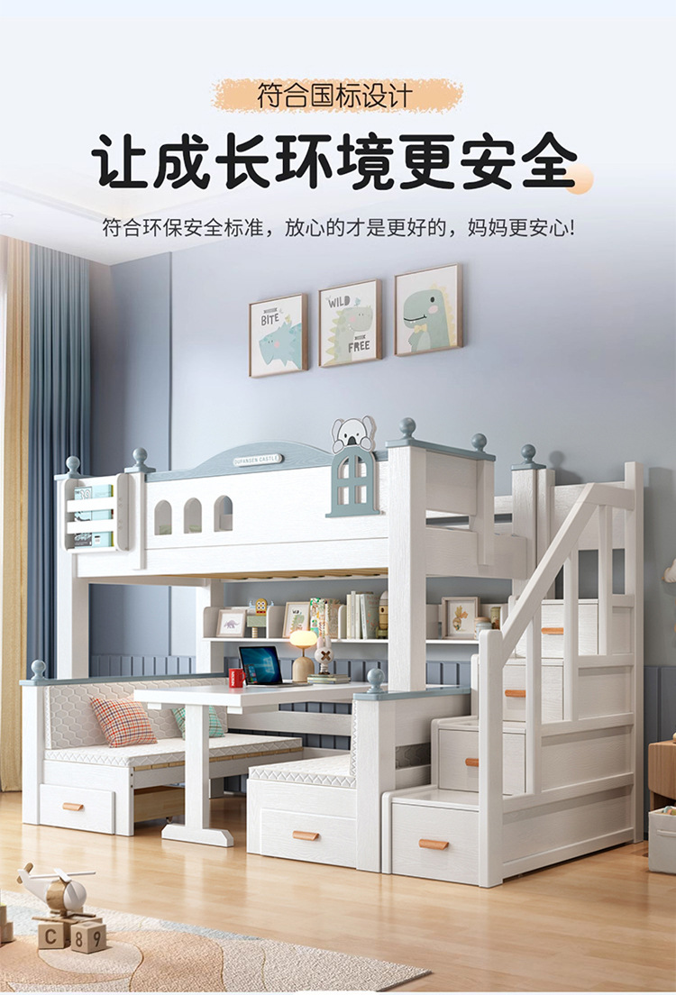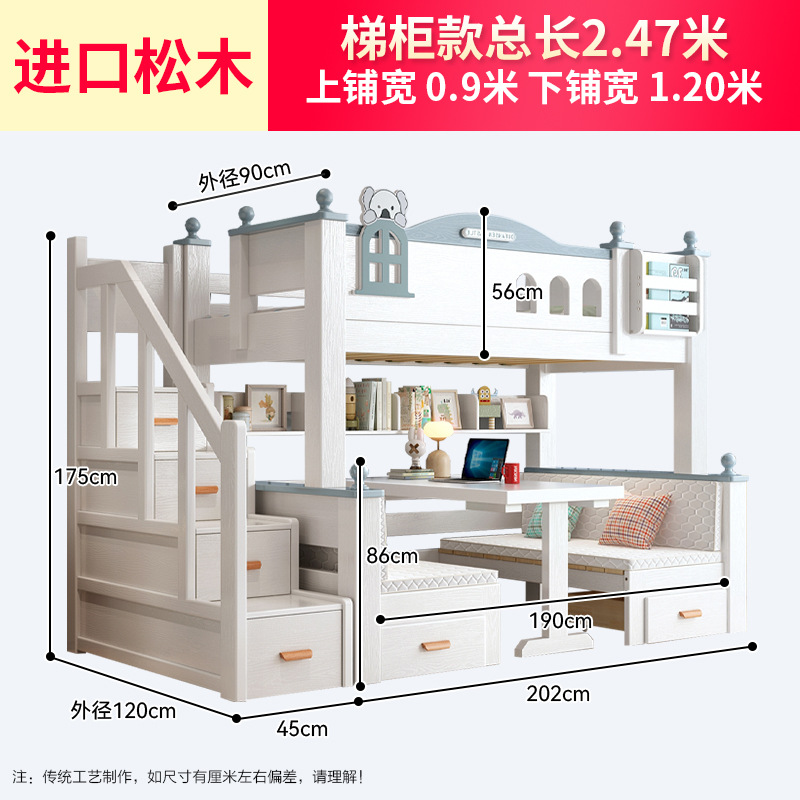 이층 침대 이층 침대 다기능 이층 침대 풀 솔리드 우드 높고 낮은 침대 어린이 침대 어린이 침대 성인 2 층 나무 침대