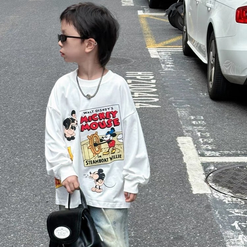 어린이 만화 인쇄 티셔츠 소년 2025 베이스 만화 봄과 가을 새로운 아기 면 최고 소년의 긴 소매스토어 가기