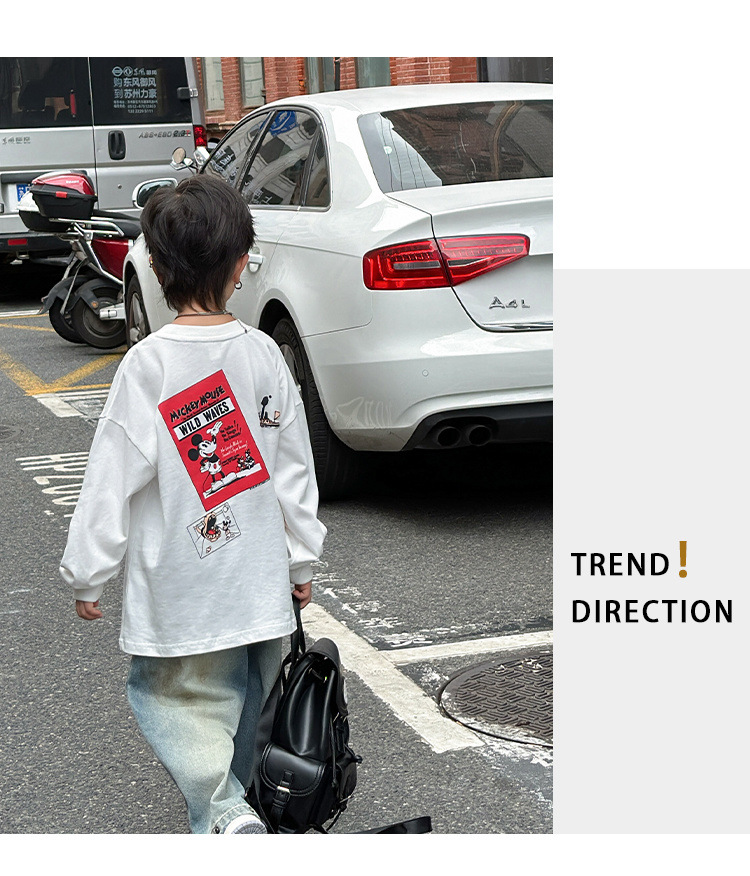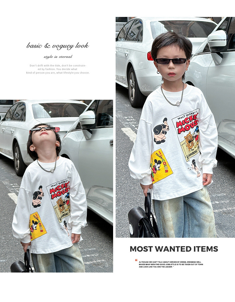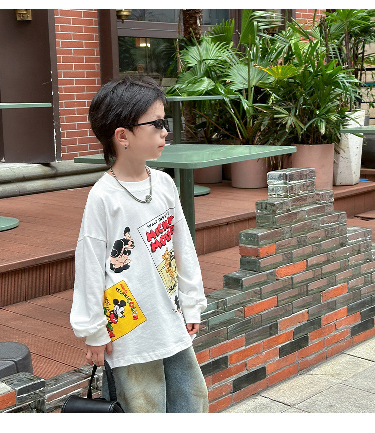 어린이 만화 인쇄 티셔츠 소년 2025 베이스 만화 봄과 가을 새로운 아기 면 최고 소년의 긴 소매