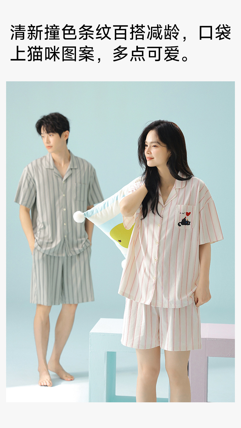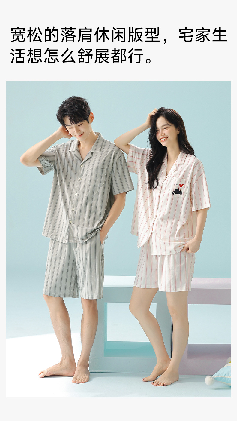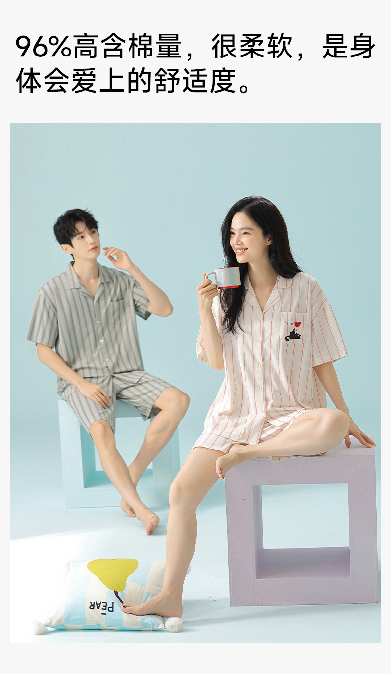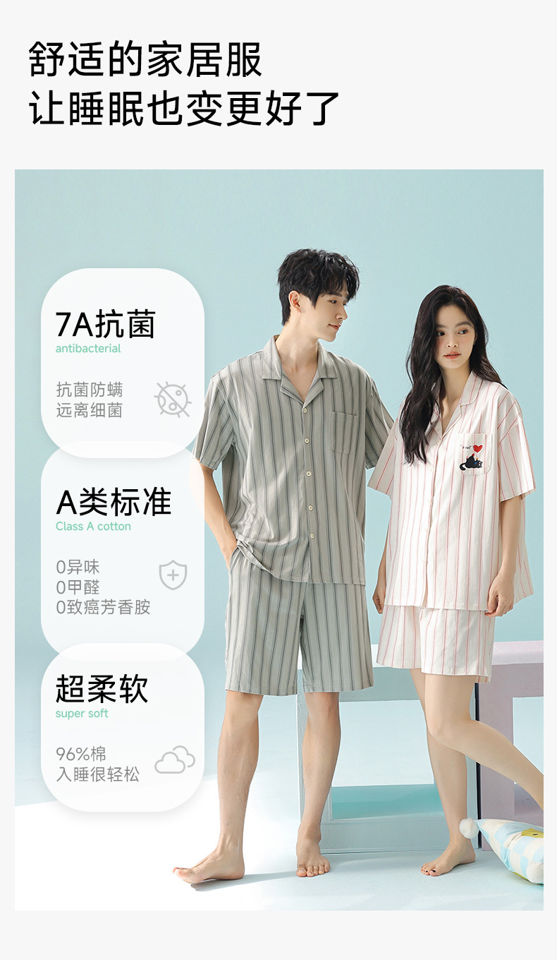 [항균 · 항진드기] 여름면 커플 잠옷 여성 2025 신형 얇은 반소매 남성용 홈 의류 세트스토어 가기