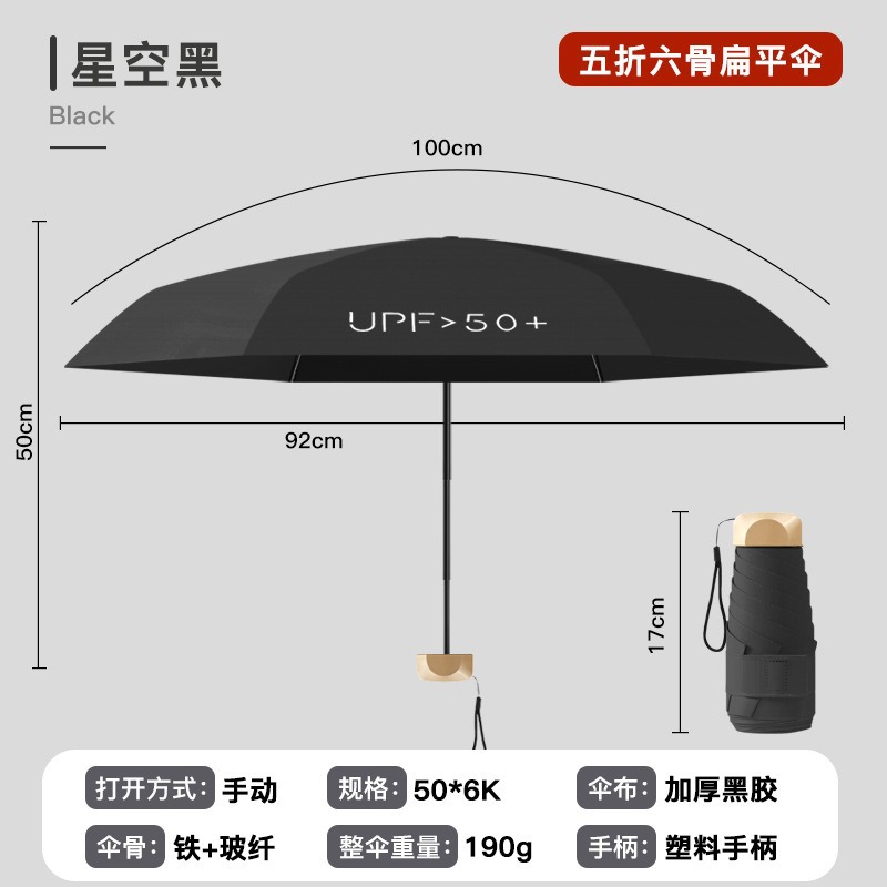 유화 50% off 휴대용 자외선 차단 블랙 플라스틱 양산 겸용 우산, 미니 소형 휴대용 접이식 우산