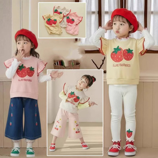 2026韩版女童女宝飞袖草莓马甲背心上衣飞袖背心上衣小公主背心