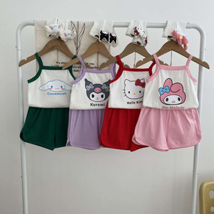 26夏季女童吊带套装韩版可爱小动物印花两件套休闲运动外出套装