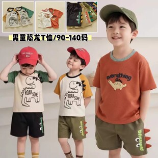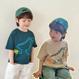 儿童夏款短袖t恤童装26夏柔软卡通恐龙字母圆领短袖T恤韩版ins