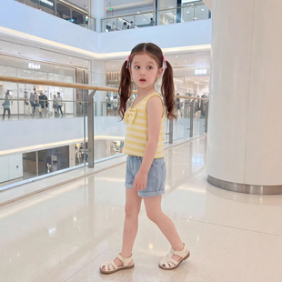 26夏季女童背心韩版洋气条纹运动上衣时尚蝴蝶结百搭女中童吊带
