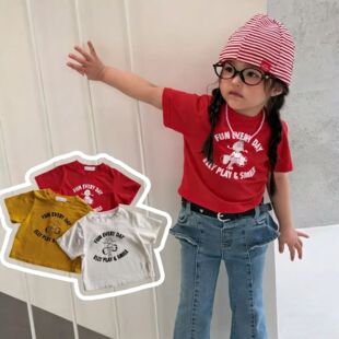 儿童夏款短袖t恤童装26夏柔软宽松卡通字母圆领短袖T恤韩版ins