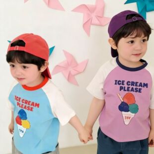 儿童夏款短袖t恤童装26夏柔软卡通字母拼色圆领短袖T恤韩版ins