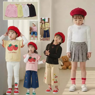 2026春女童蝴蝶结木耳边休闲长袖打底T恤新款女宝宝百搭打底衫