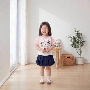 26新款女童套头短袖上衣t恤小童夏季圆领卡通印花宽松儿童打底衫