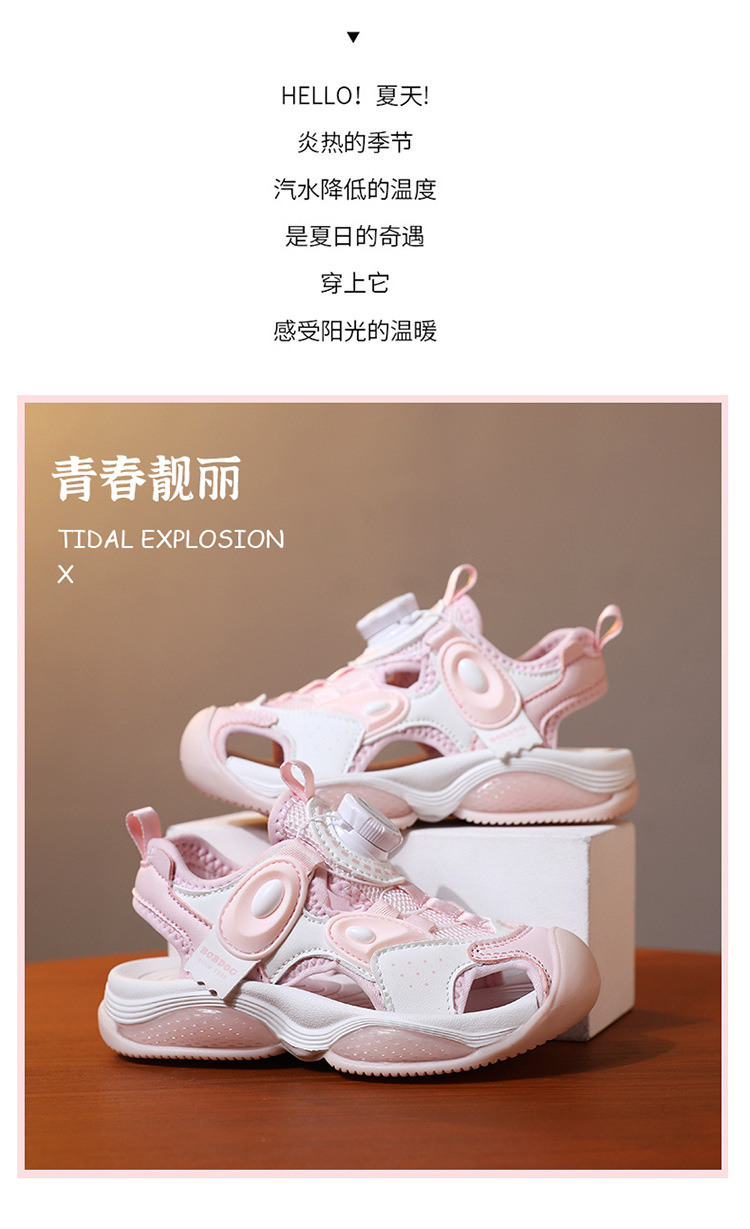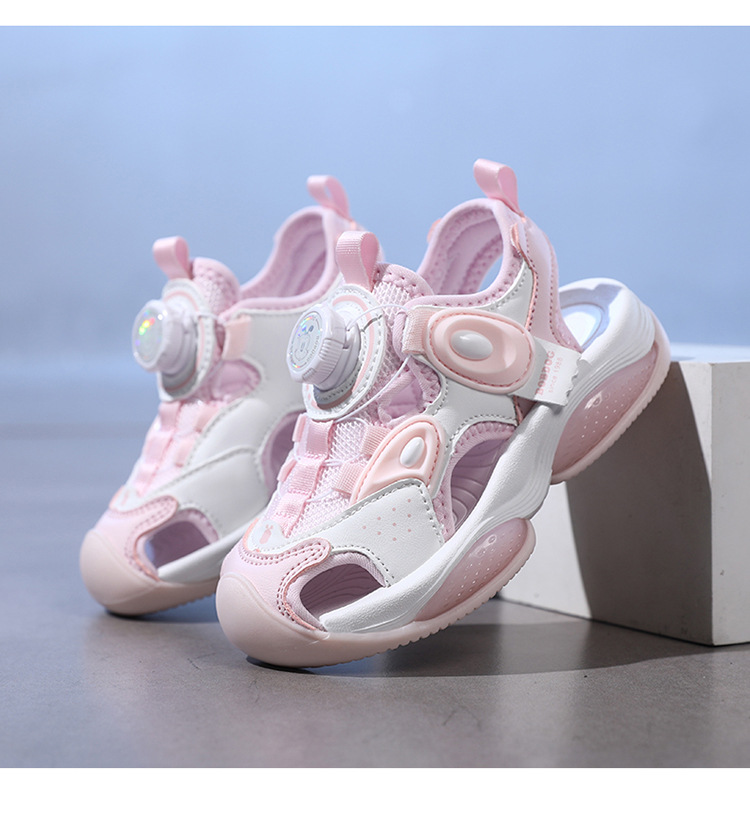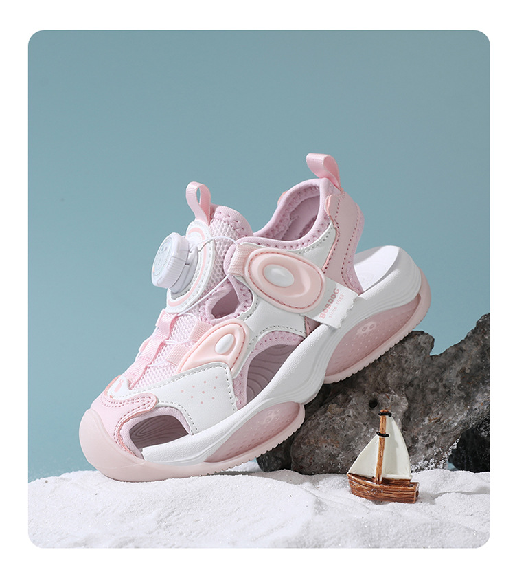 Babu Bean Girls 비치 슈즈 2025 여름 새로운 스타일 Baotou 스포츠 샌들 빅 키즈 버튼 샌들 소녀스토어 가기