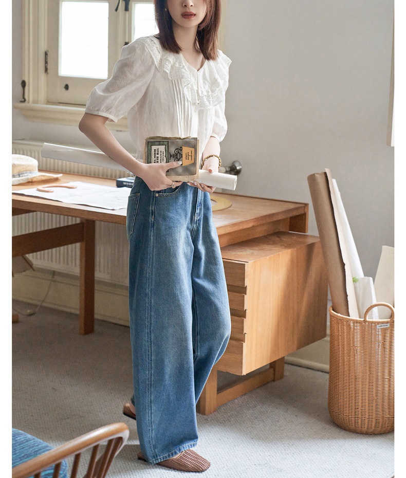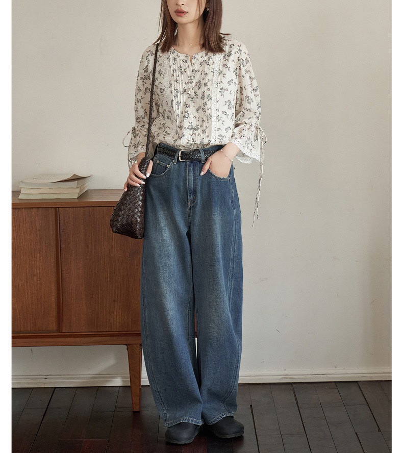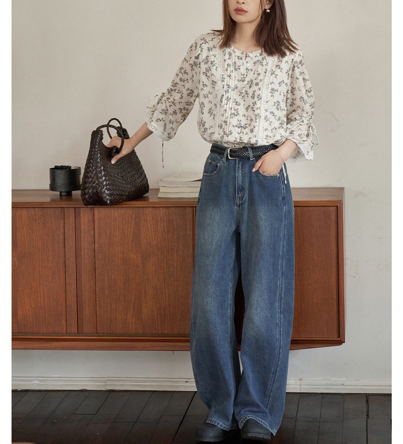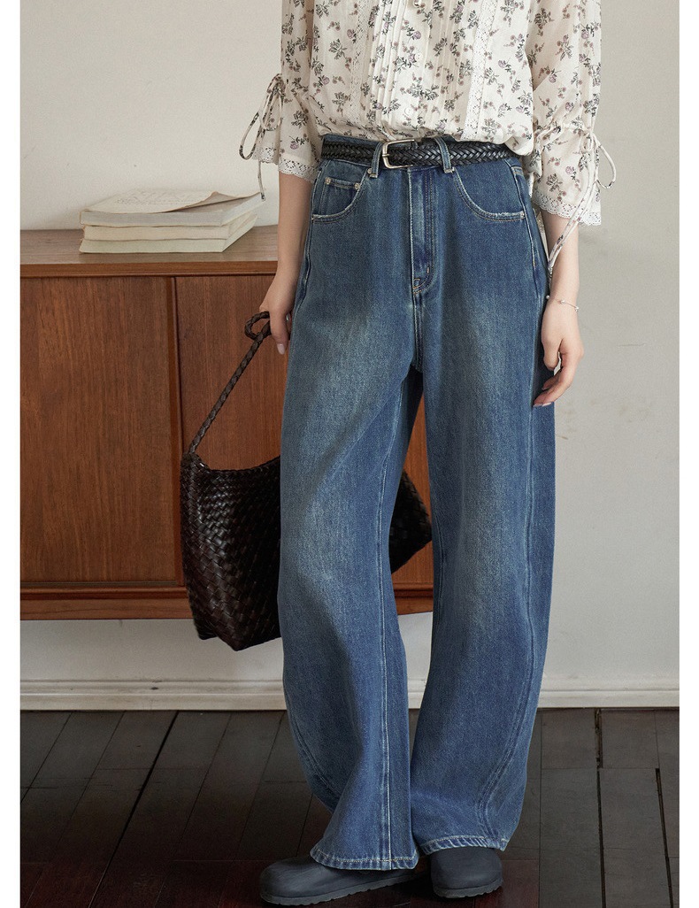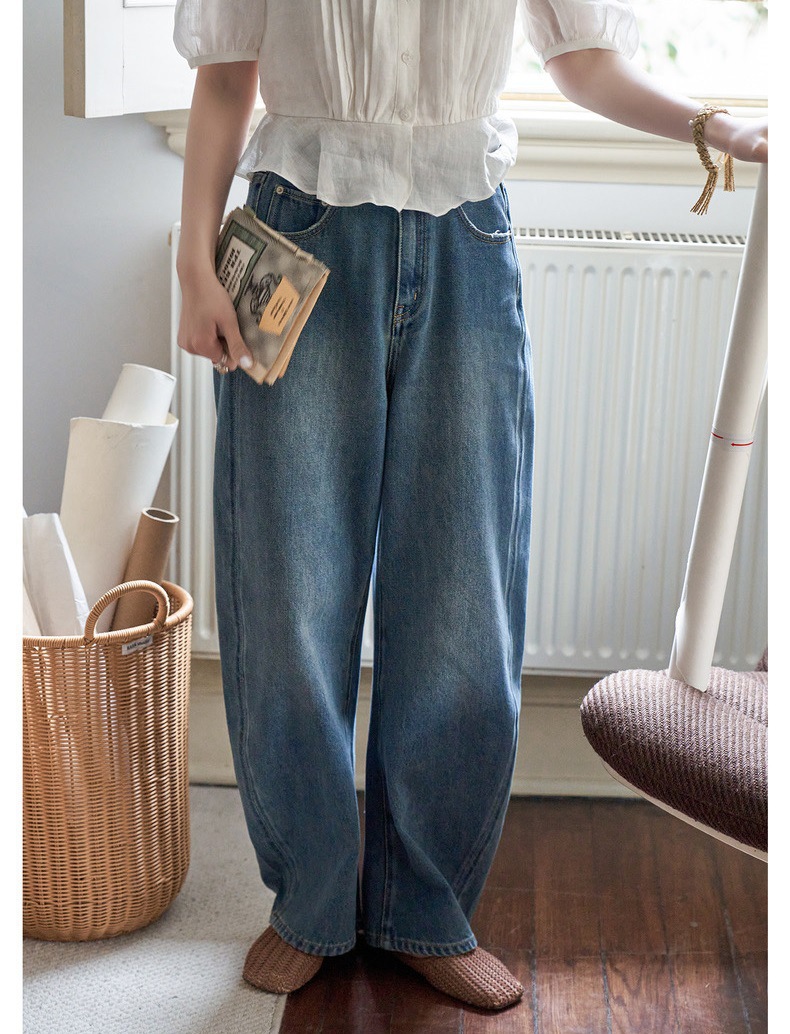 "화이트 드로잉" "360 도 좋은 버전" 봄과 가을 느슨한 스트레이트 바지 Machete 넓은 다리 청바지 여성스토어 가기
