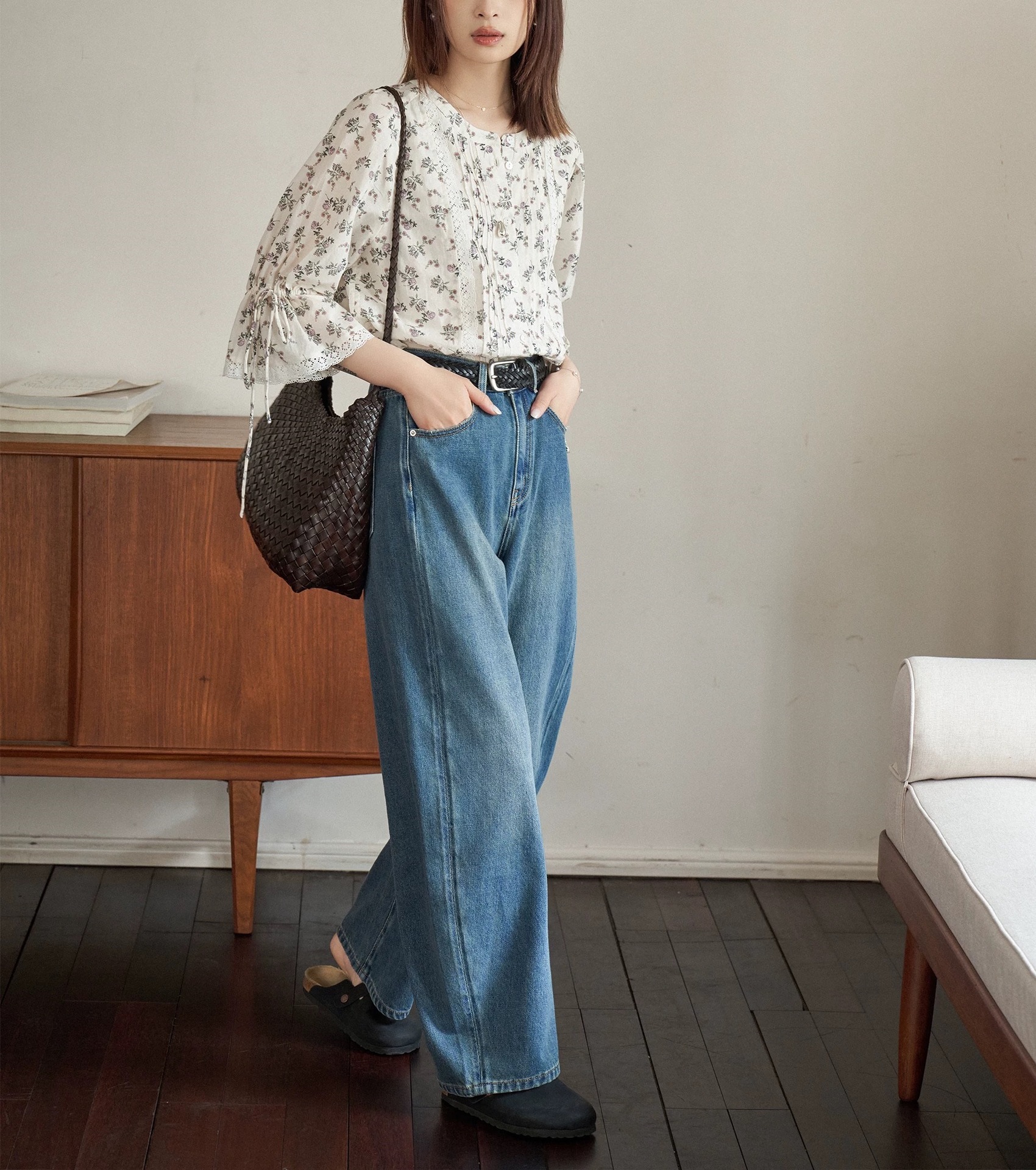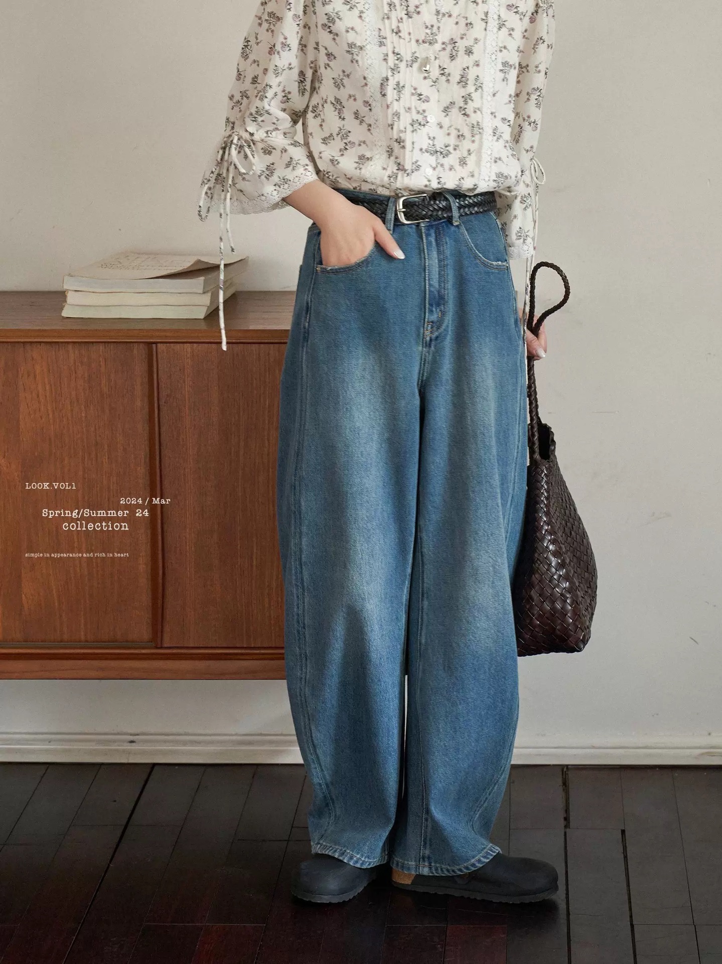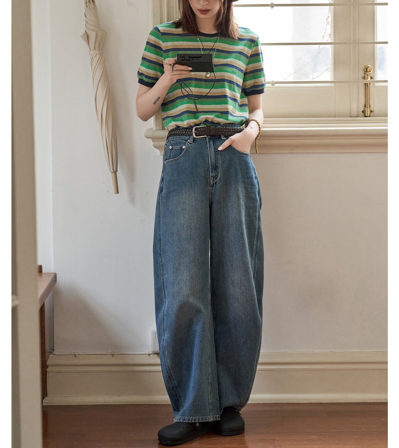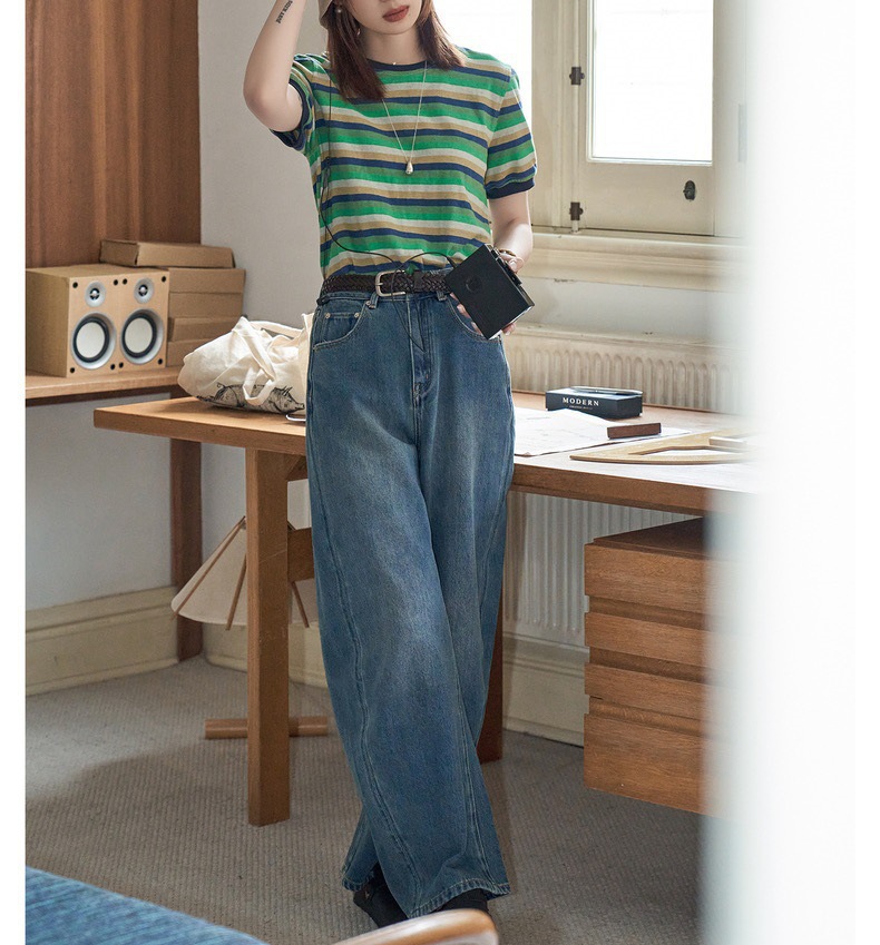 "화이트 드로잉" "360 도 좋은 버전" 봄과 가을 느슨한 스트레이트 바지 Machete 넓은 다리 청바지 여성스토어 가기