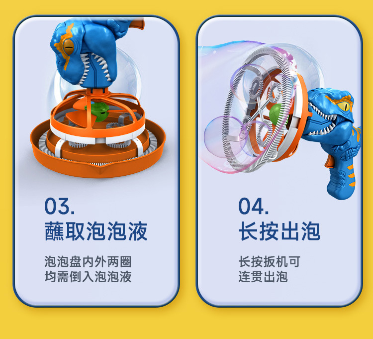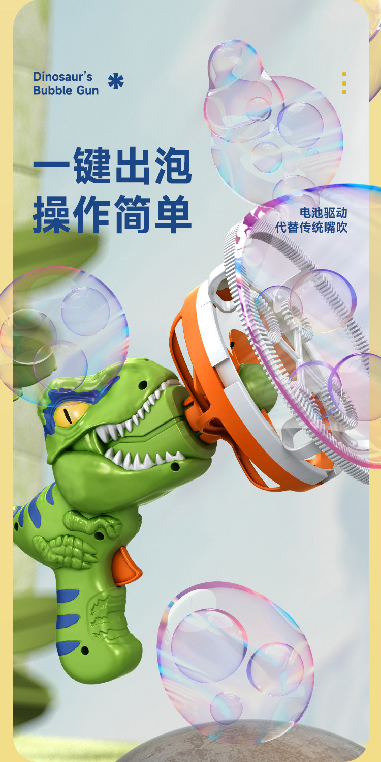 거품 거품 새로운 공룡 거품 총 어린이 팬 휴대용 전기 부는 큰 거품 기계 어린이 장난감 도매스토어 가기