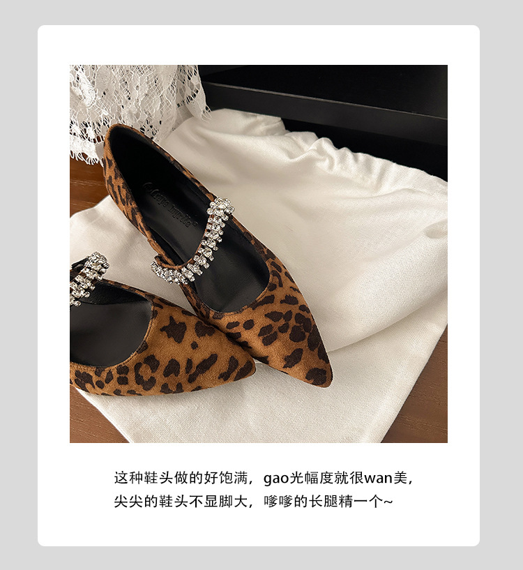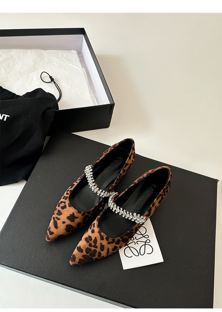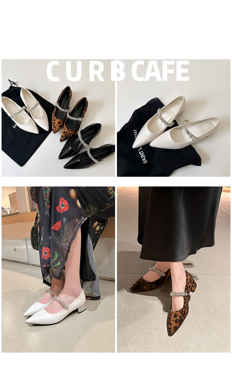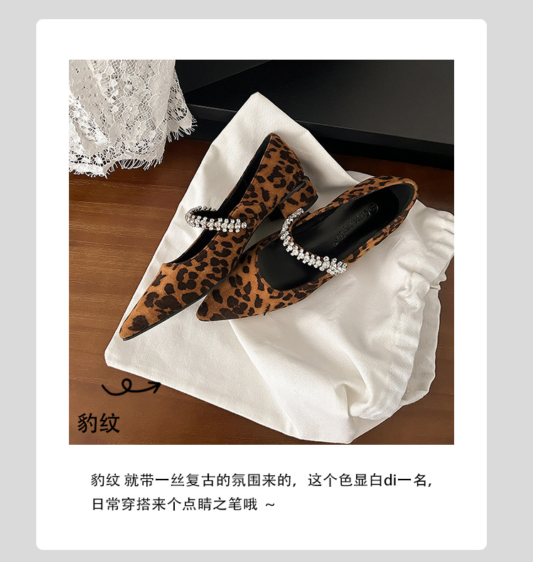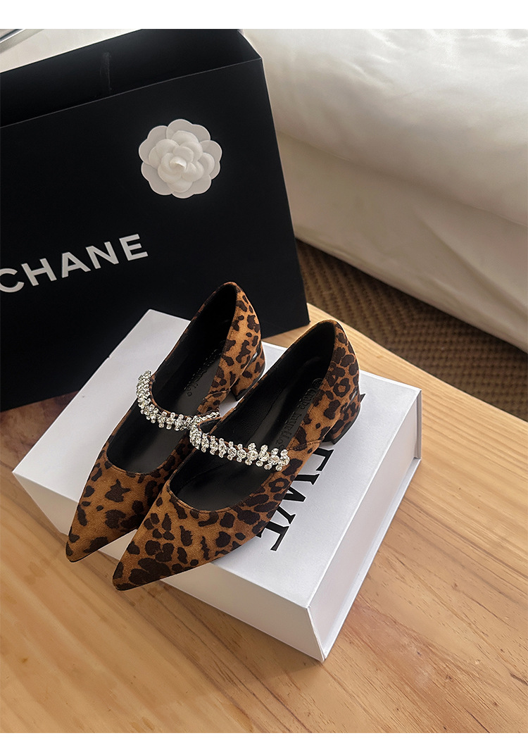 포도 엄마 새로운 우아한 작은 뾰족한 다이아몬드 벨트 모든 경기 레오파드 무늬 얕은 입 작은 청키 힐 신발 여성의 봄스토어 가기
