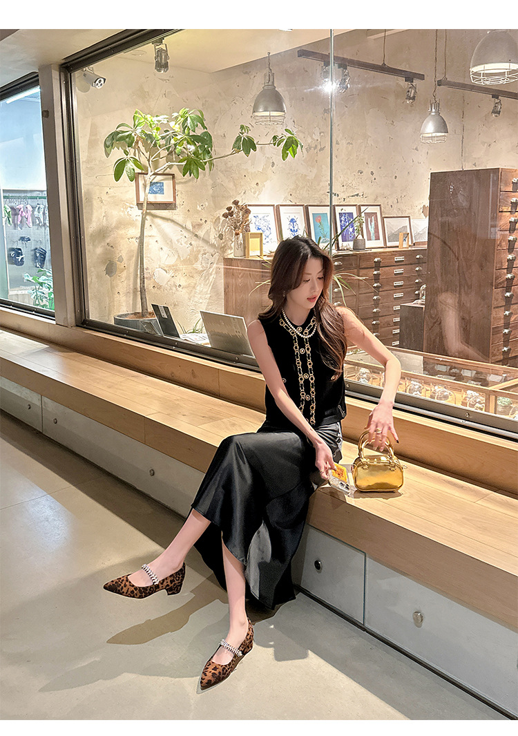 포도 엄마 새로운 우아한 작은 뾰족한 다이아몬드 벨트 모든 경기 레오파드 무늬 얕은 입 작은 청키 힐 신발 여성의 봄