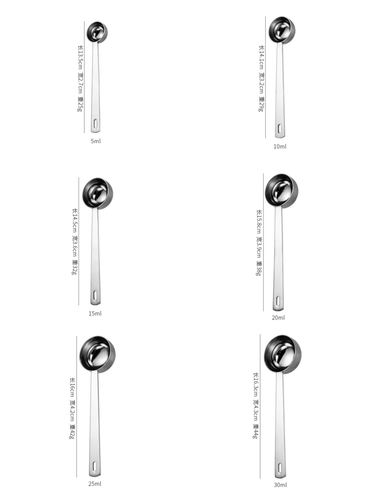 304 스테인레스 스틸 측정 숟가락 분유 커피 콩 그램 번호 15 스케일 긴 손잡이 작은 측정 숟가락 측정 과일 분말 숟가락 10 ml