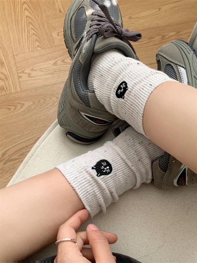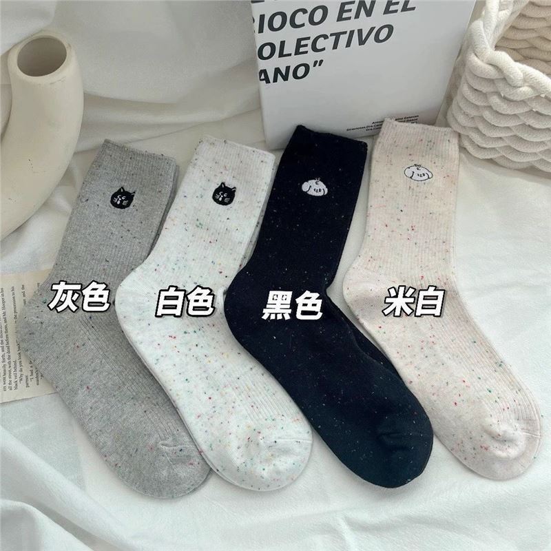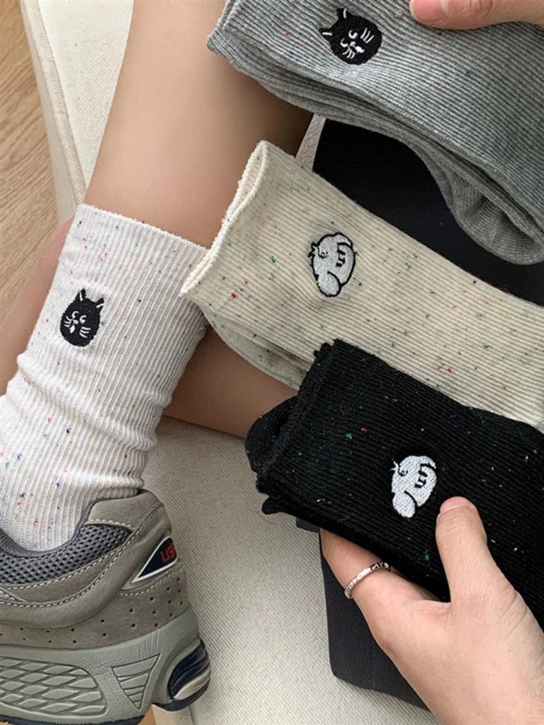 봄과 여름 도트 원사 귀여운 자카드 강아지 고양이 양말 여성 중형 양말 올 매치 통기성 화이트 일본 스타일 인스타그램 스타일 유행스토어 가기