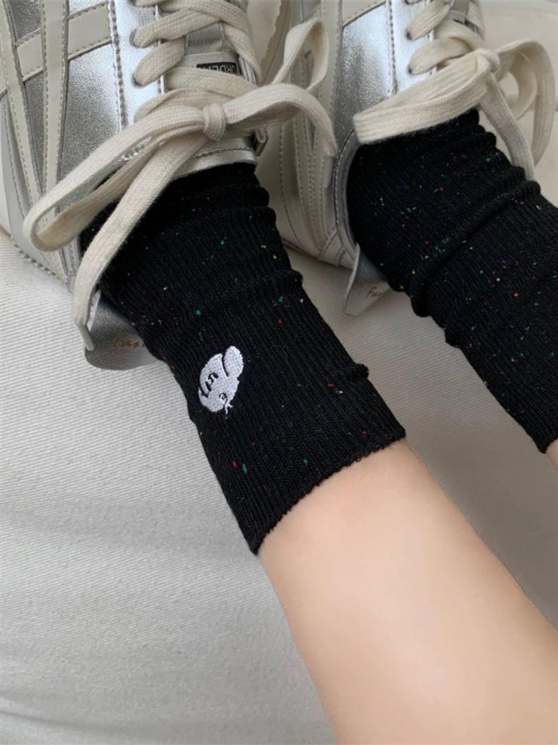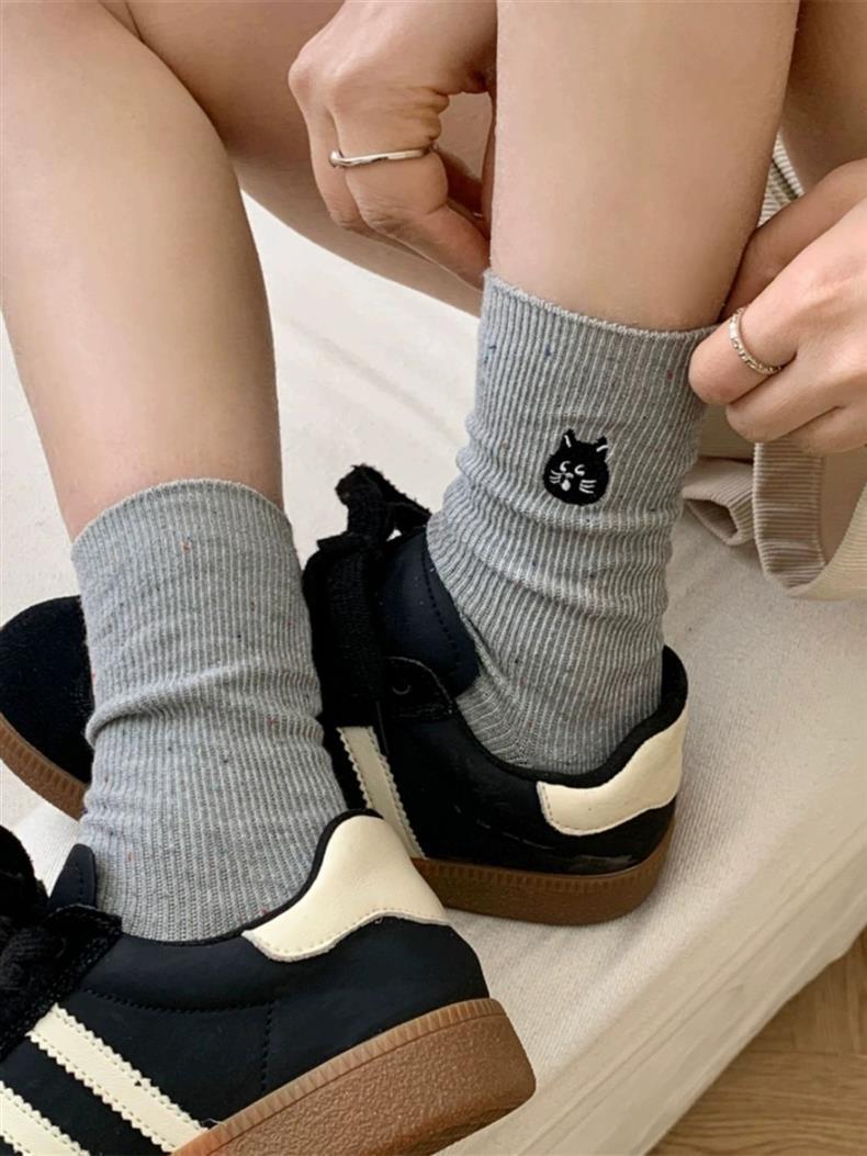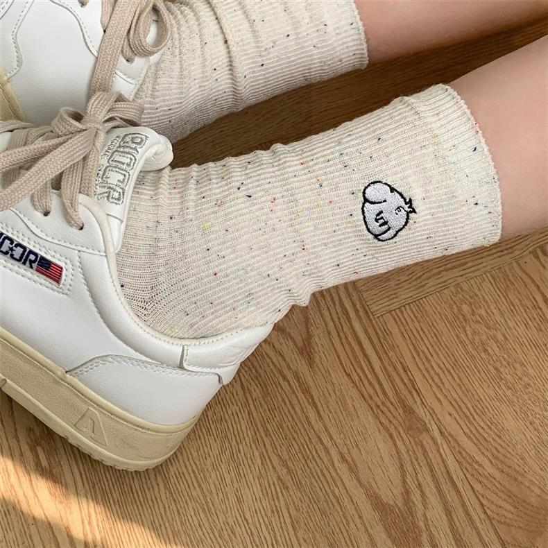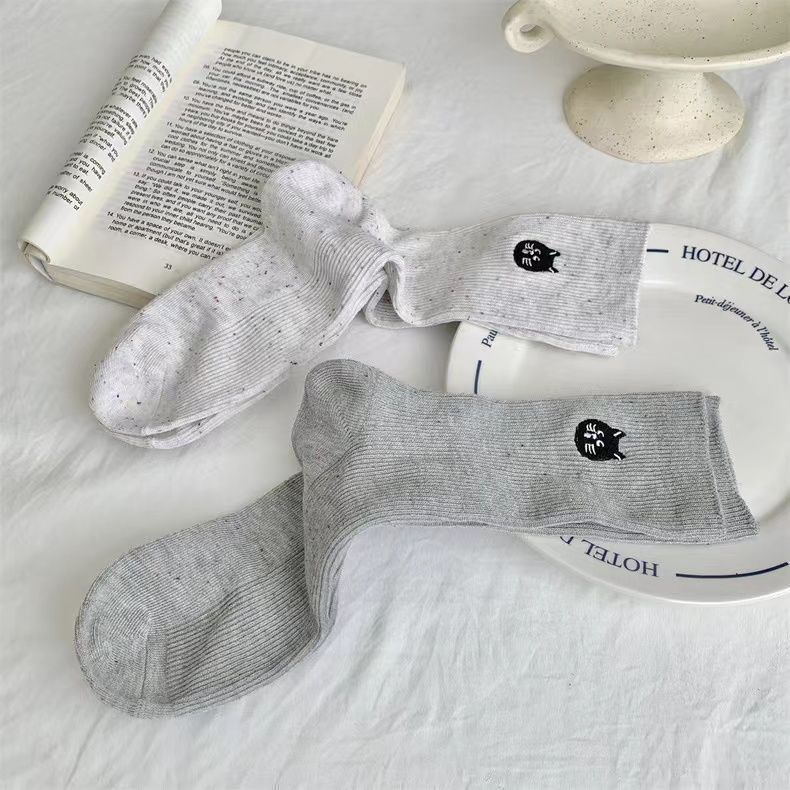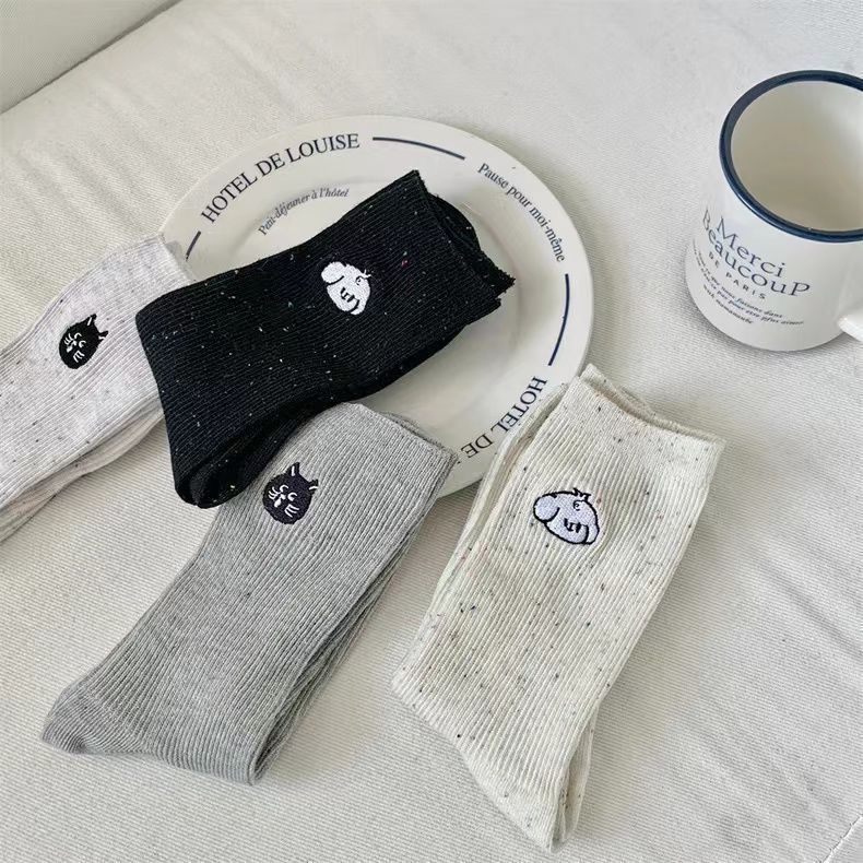 봄과 여름 도트 원사 귀여운 자카드 강아지 고양이 양말 여성 중형 양말 올 매치 통기성 화이트 일본 스타일 인스타그램 스타일 유행