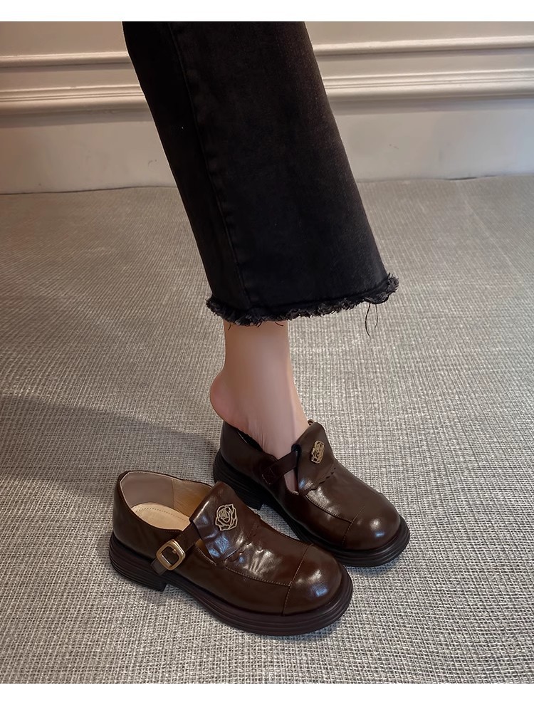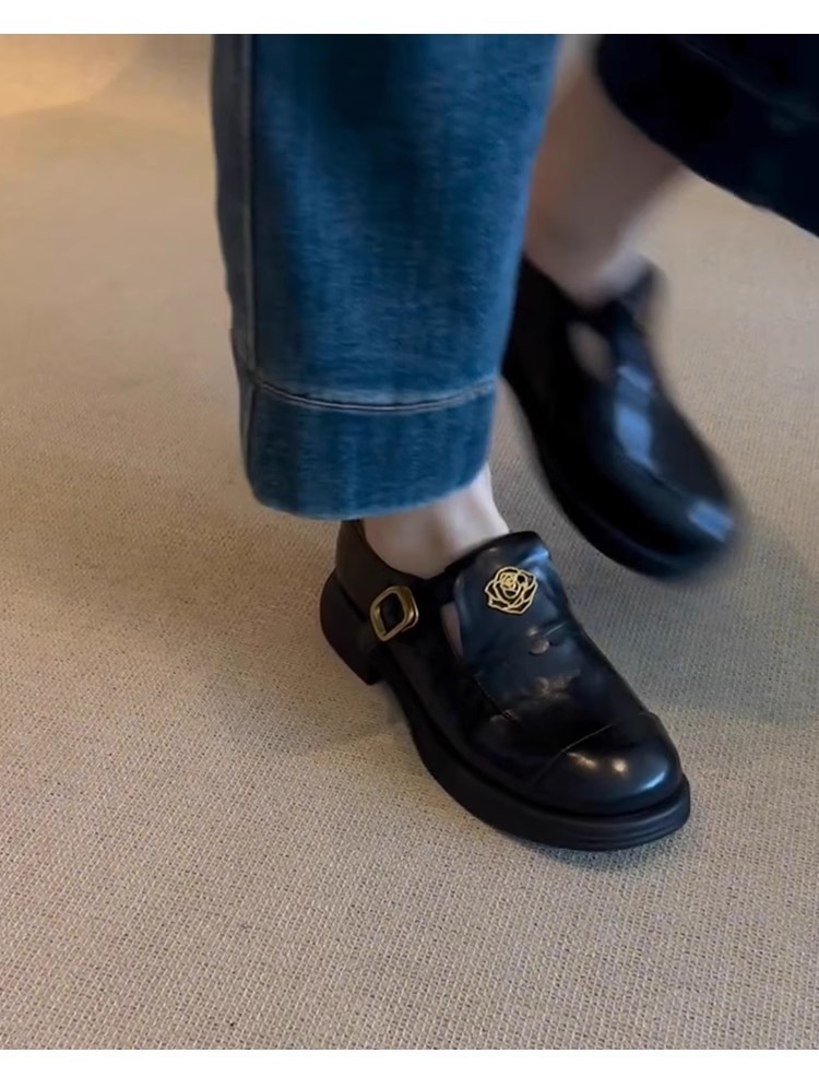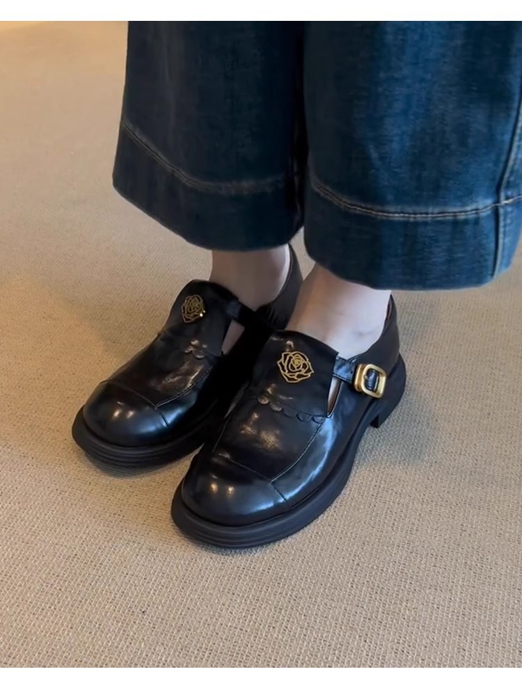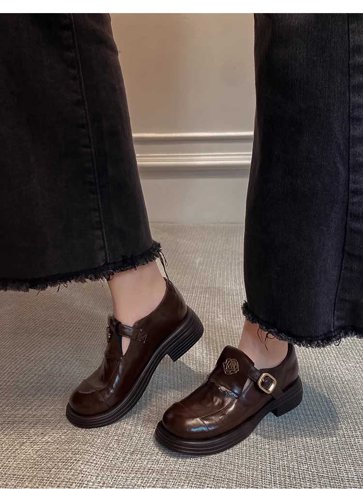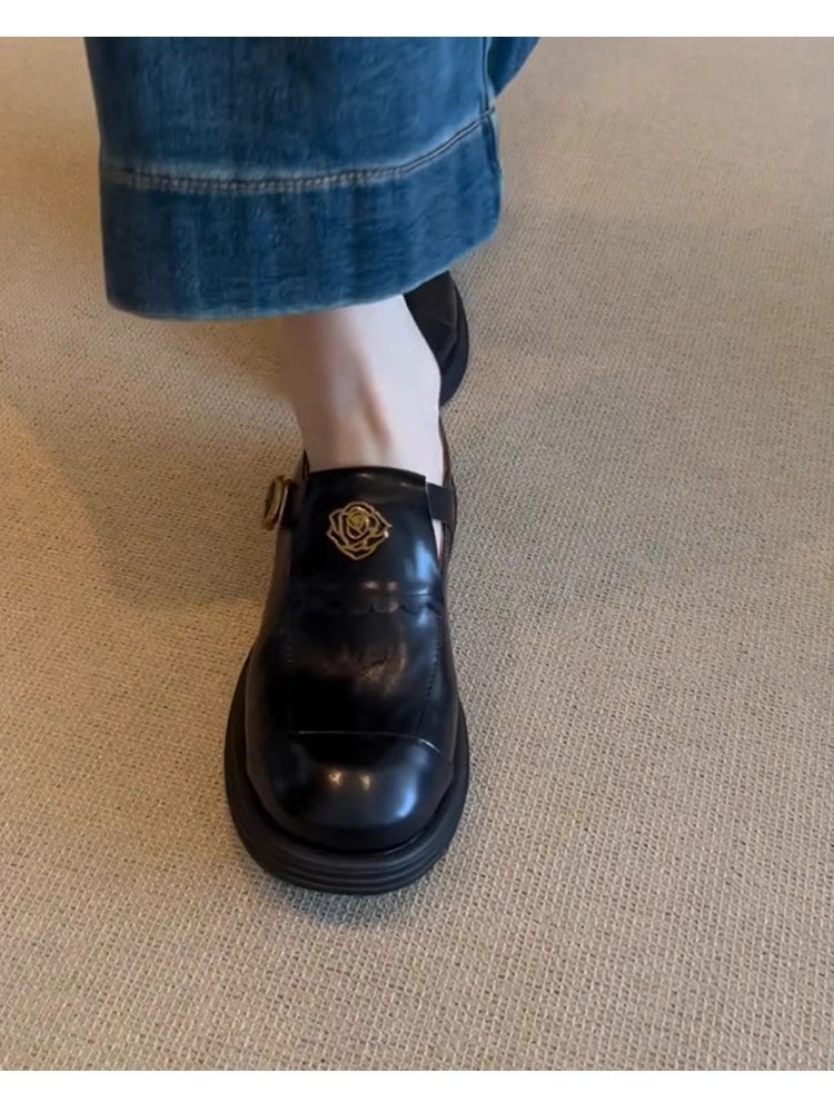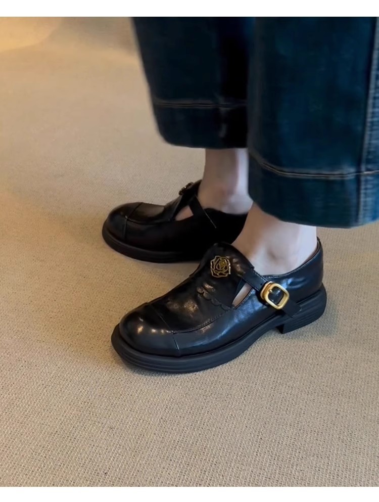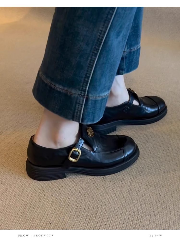 빈티지 작은 가죽 신발 2025 봄 새로운 여성 신발 두꺼운 유일한 두꺼운 가열 깊은 입 낮은 탑 신발 깊은 입 싱글 레이어 신발스토어 가기