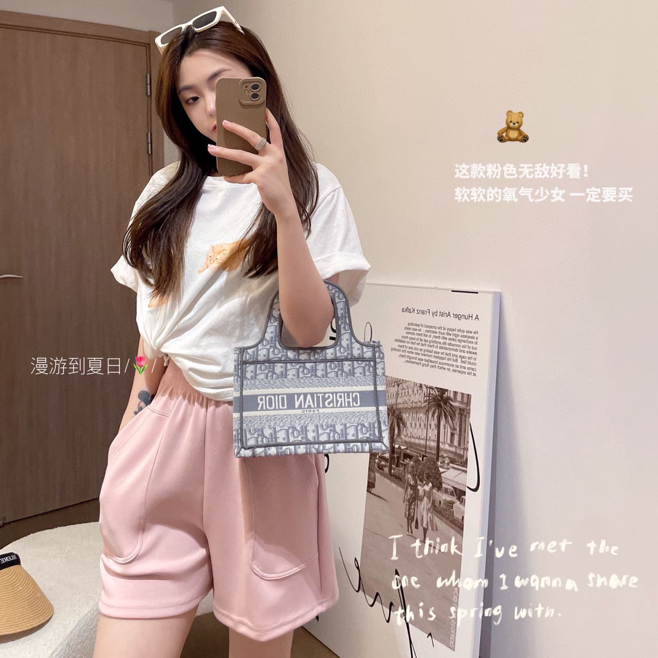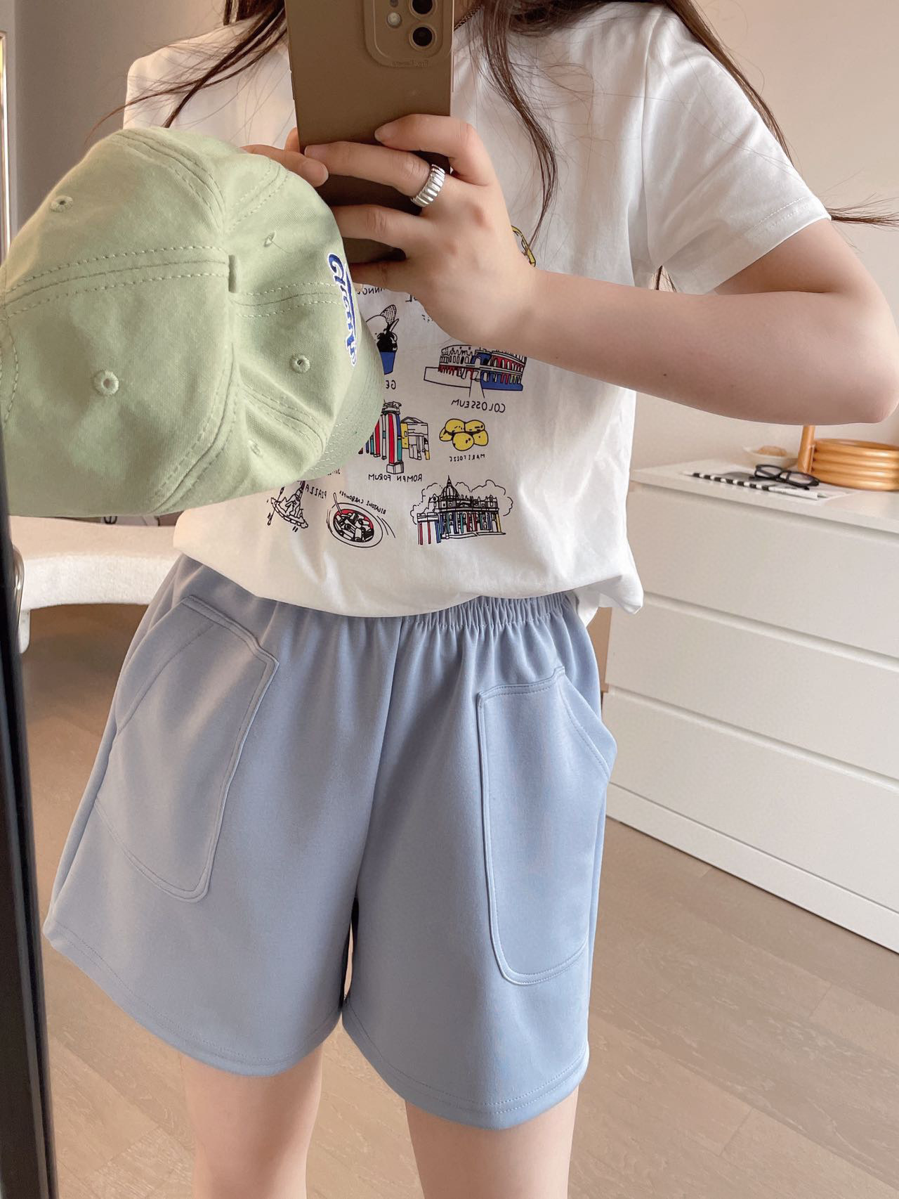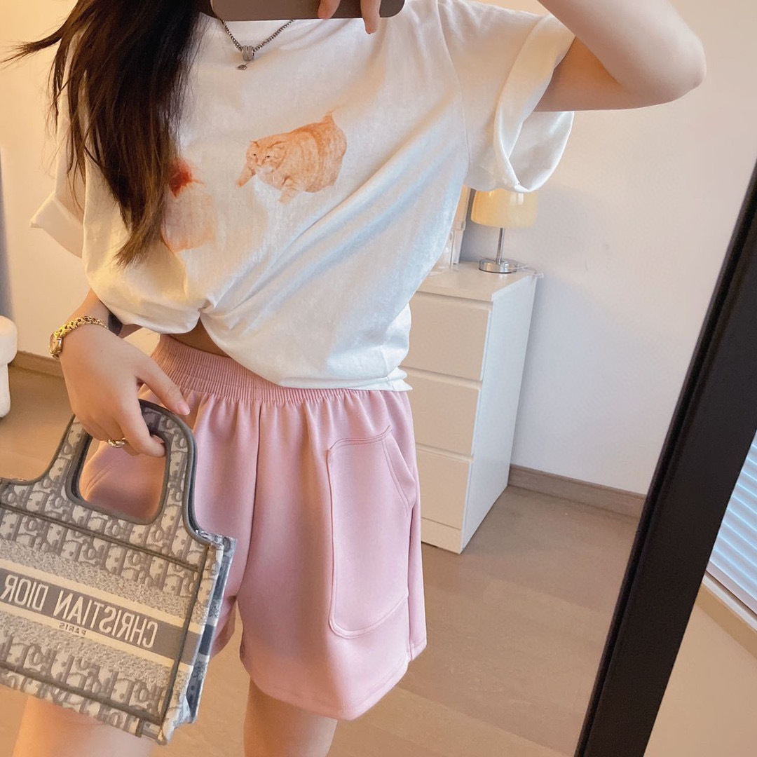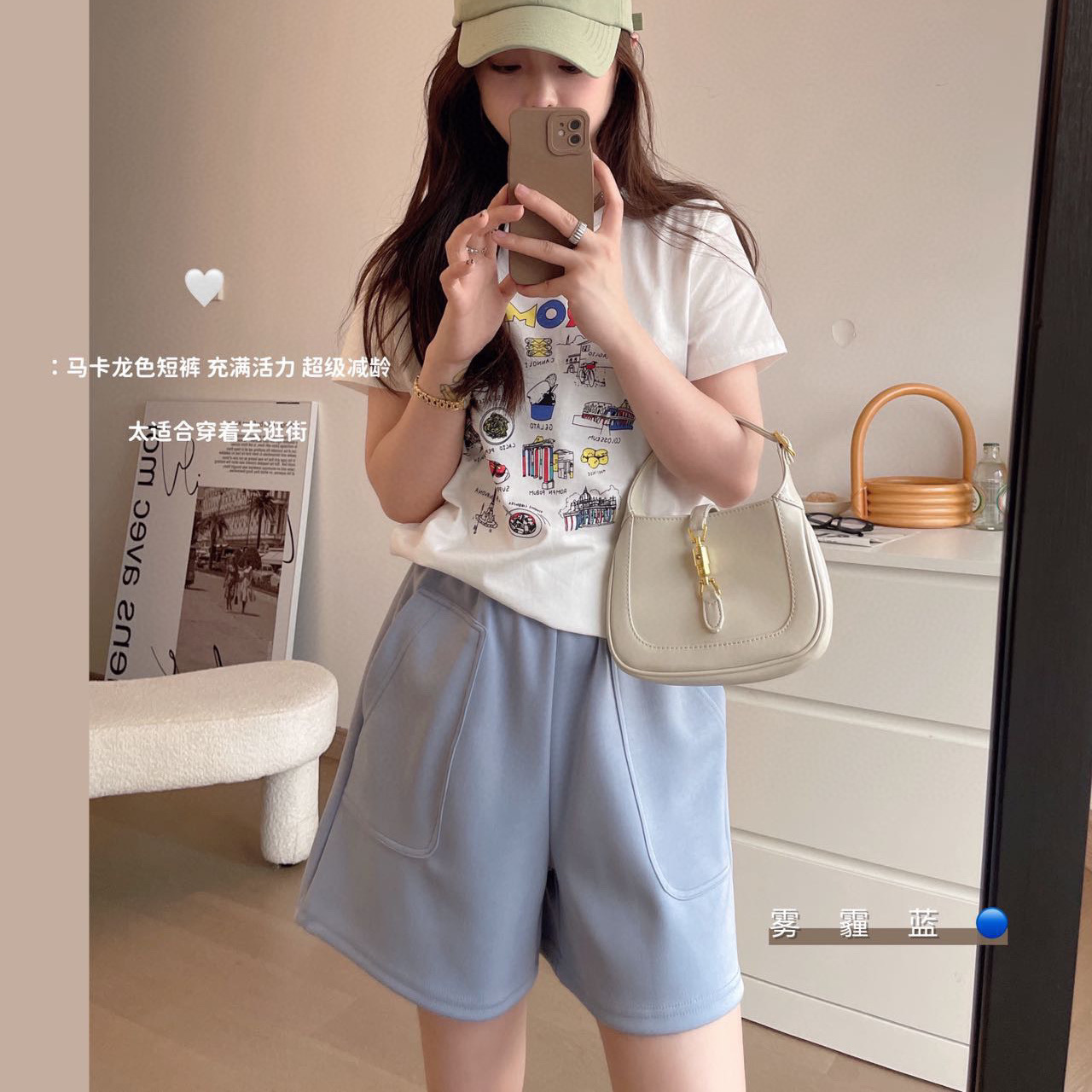 천 Xiaojiu 크림 반바지 여성 2025 년 여름 새로운 루즈 모달 스트레이트 코튼 캐주얼 핫 팬츠 외부 착용 반바지스토어 가기