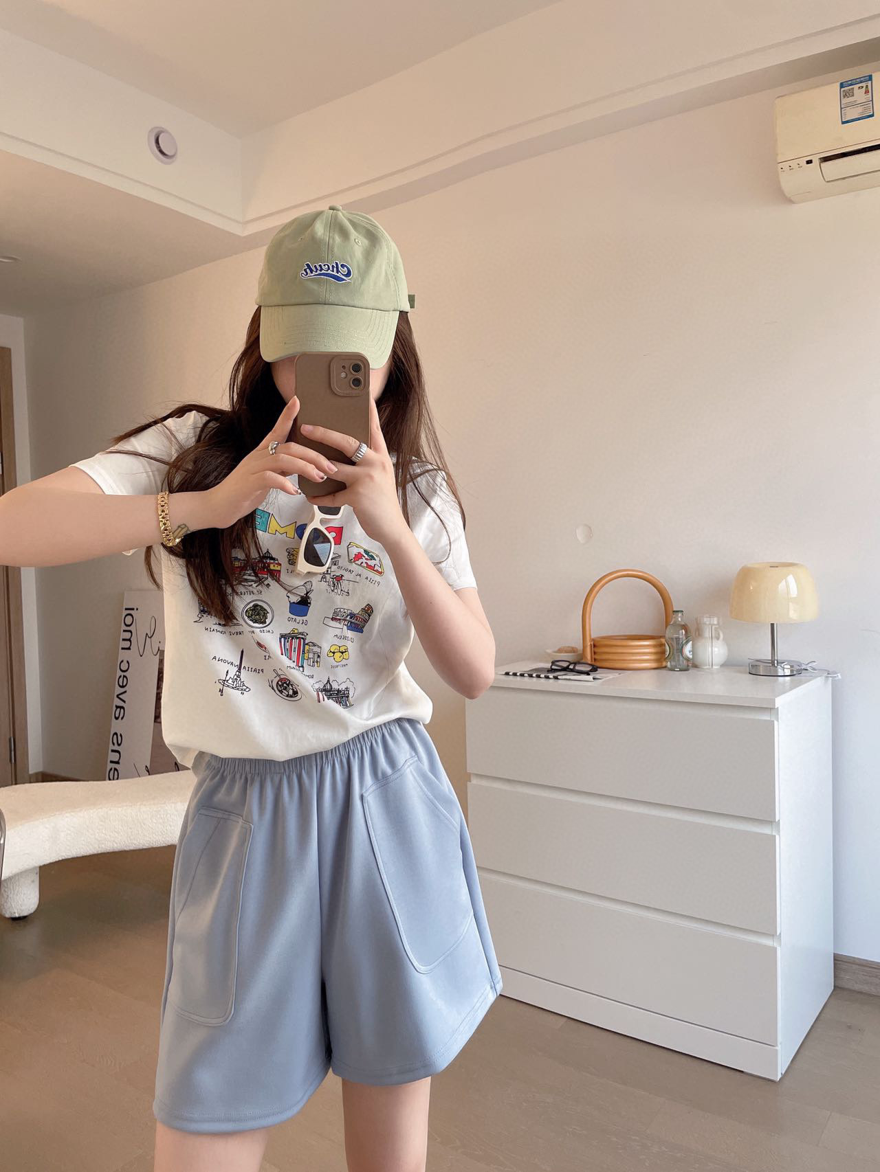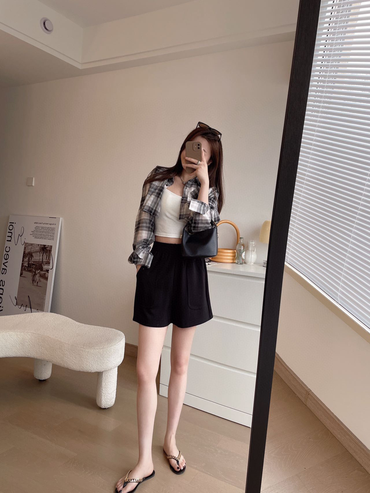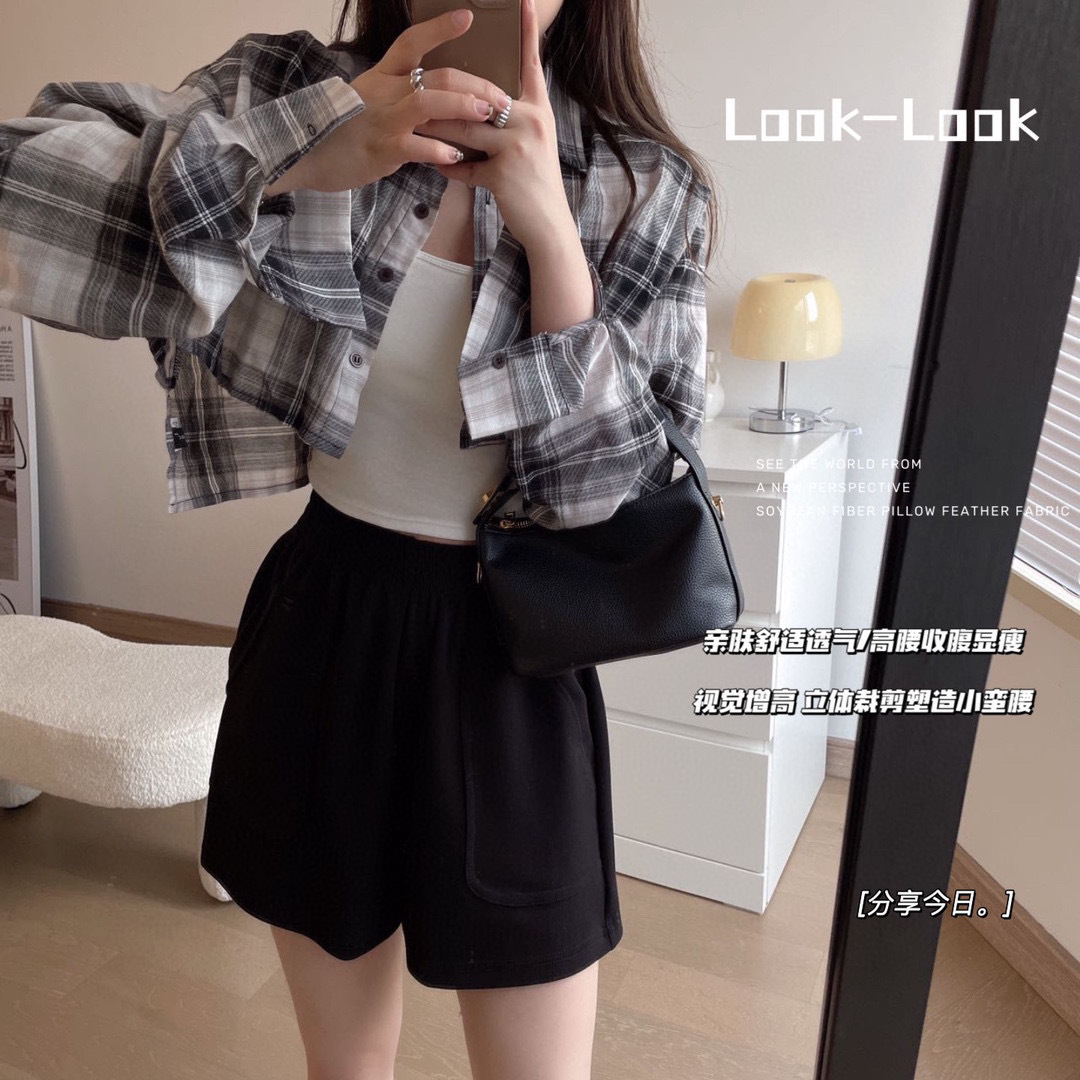천 Xiaojiu 크림 반바지 여성 2025 년 여름 새로운 루즈 모달 스트레이트 코튼 캐주얼 핫 팬츠 외부 착용 반바지스토어 가기