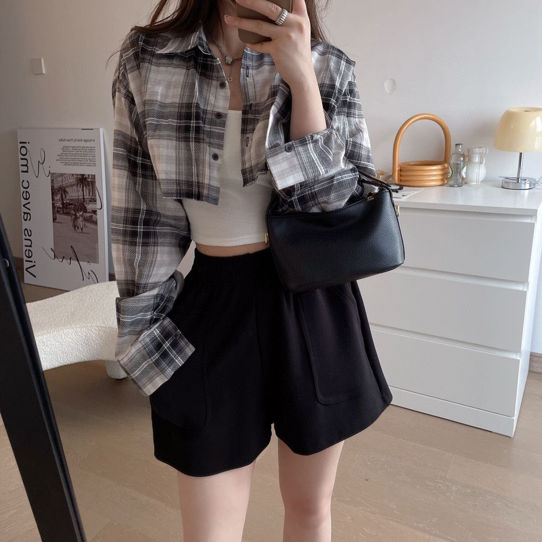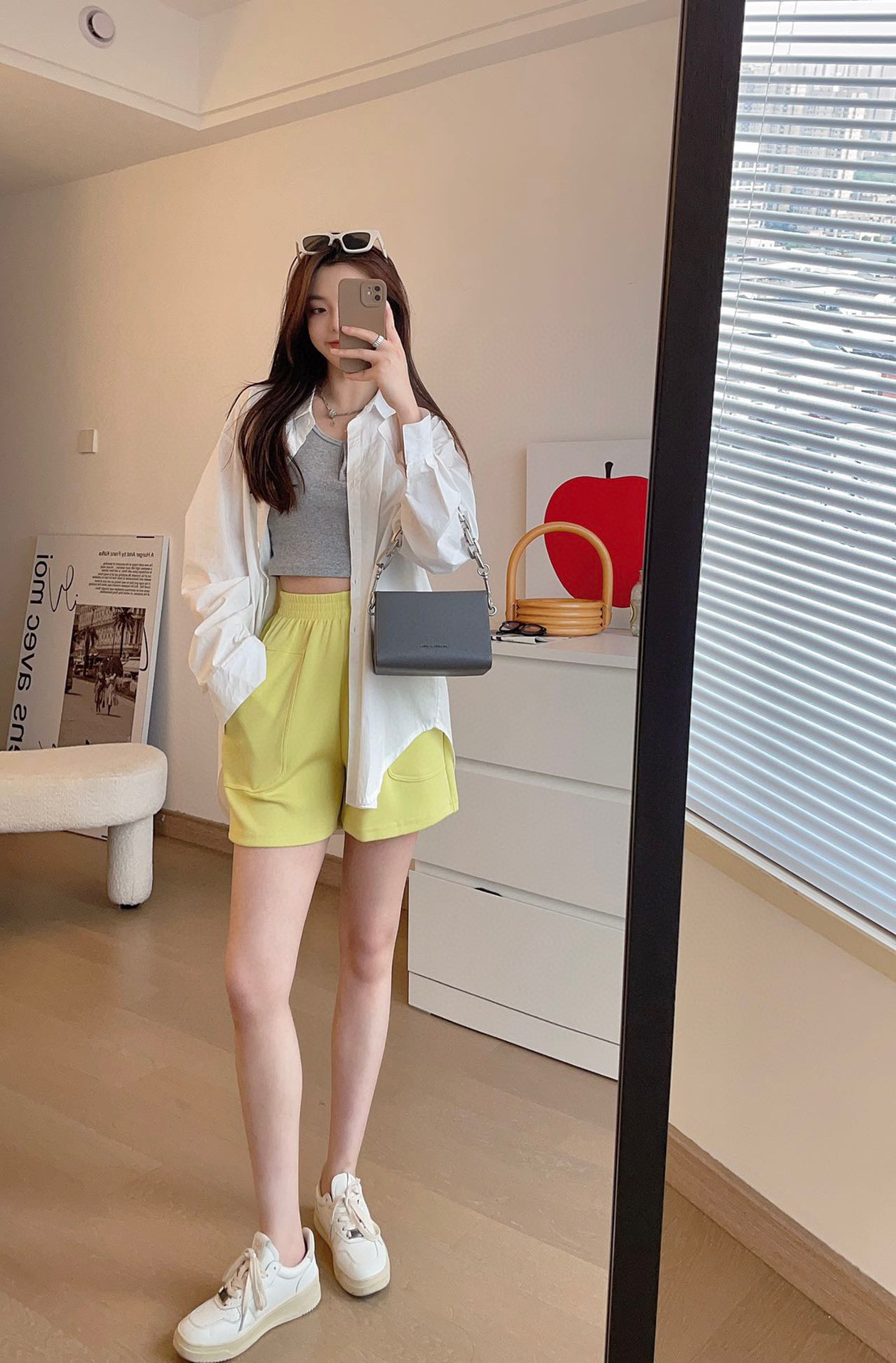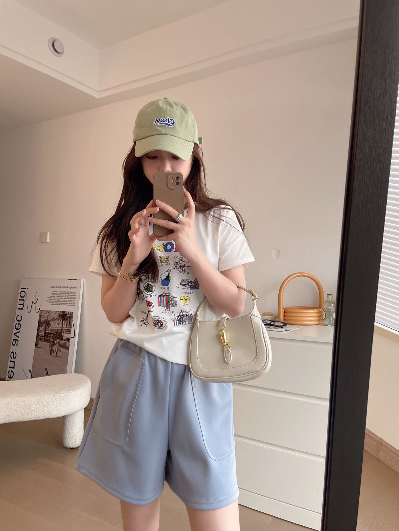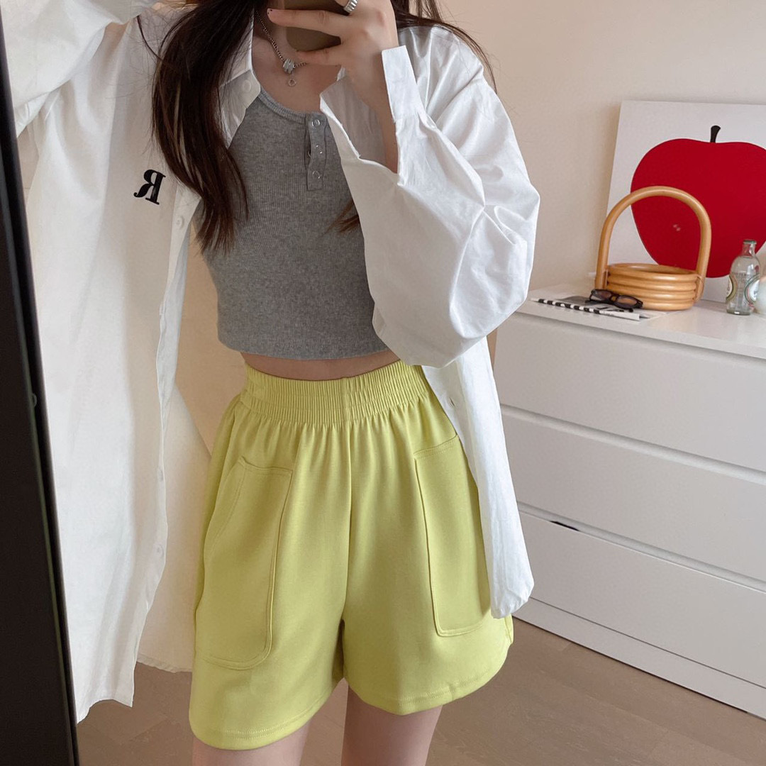 천 Xiaojiu 크림 반바지 여성 2025 년 여름 새로운 루즈 모달 스트레이트 코튼 캐주얼 핫 팬츠 외부 착용 반바지스토어 가기