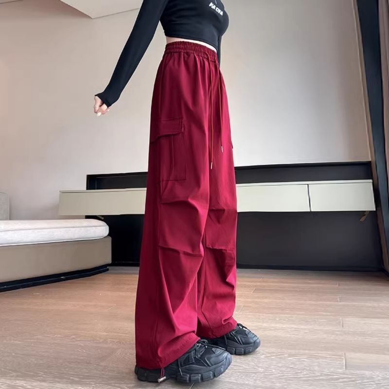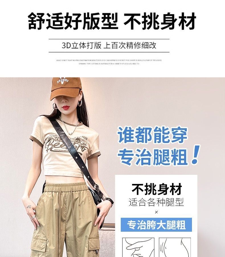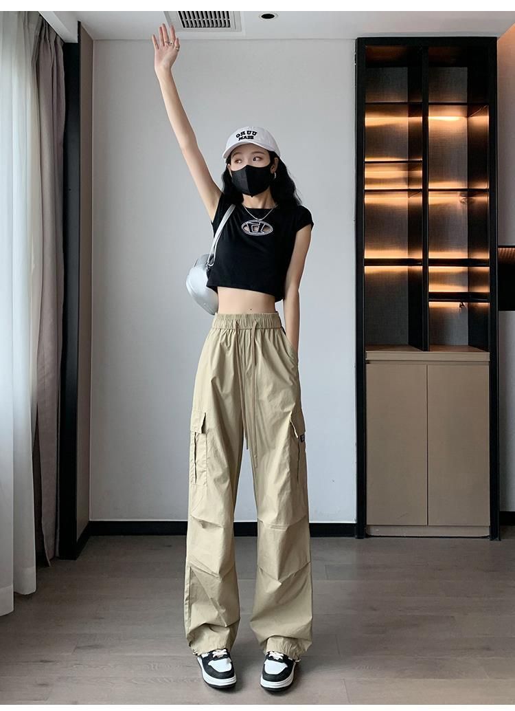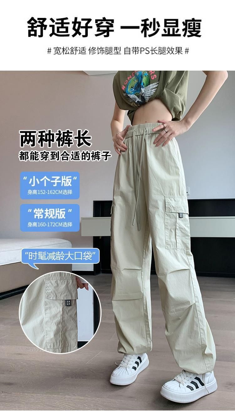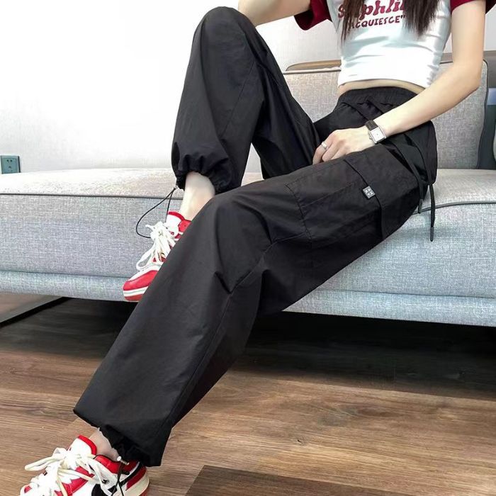 여름 아이스 실크 빠른 건조 작업복 여성용 느슨한 높은 허리 끈 등반 바지 미국식 할란 스포츠 바지 여자 트렌디스토어 가기
