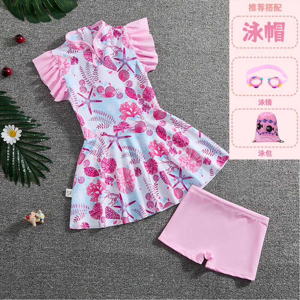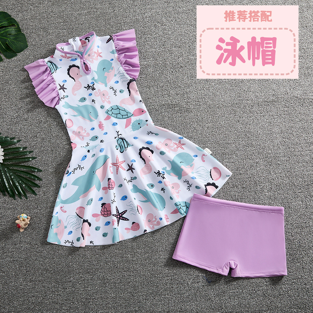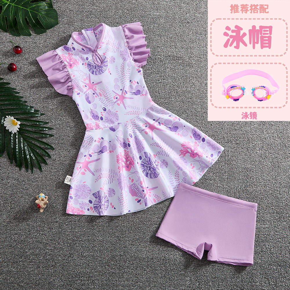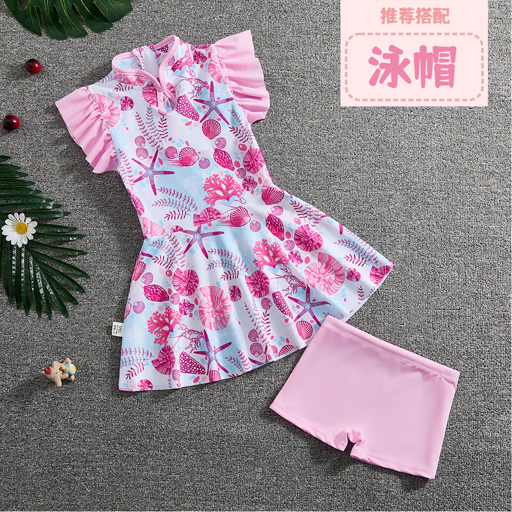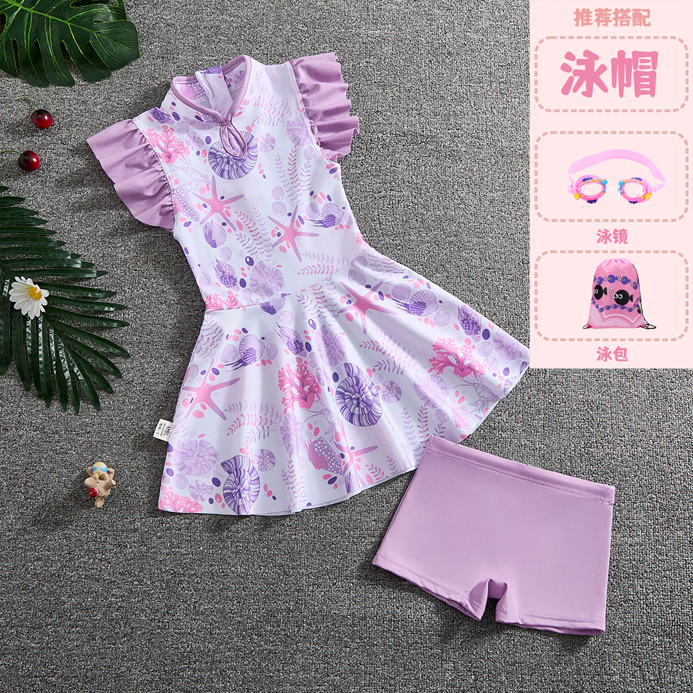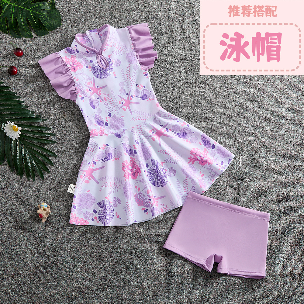 소녀 Guofeng 분할 수영복 어린이 새로운 중국 스타일 여름 새 소녀의 선 스크린 빠른 건조 원피스 수영복 트렌디