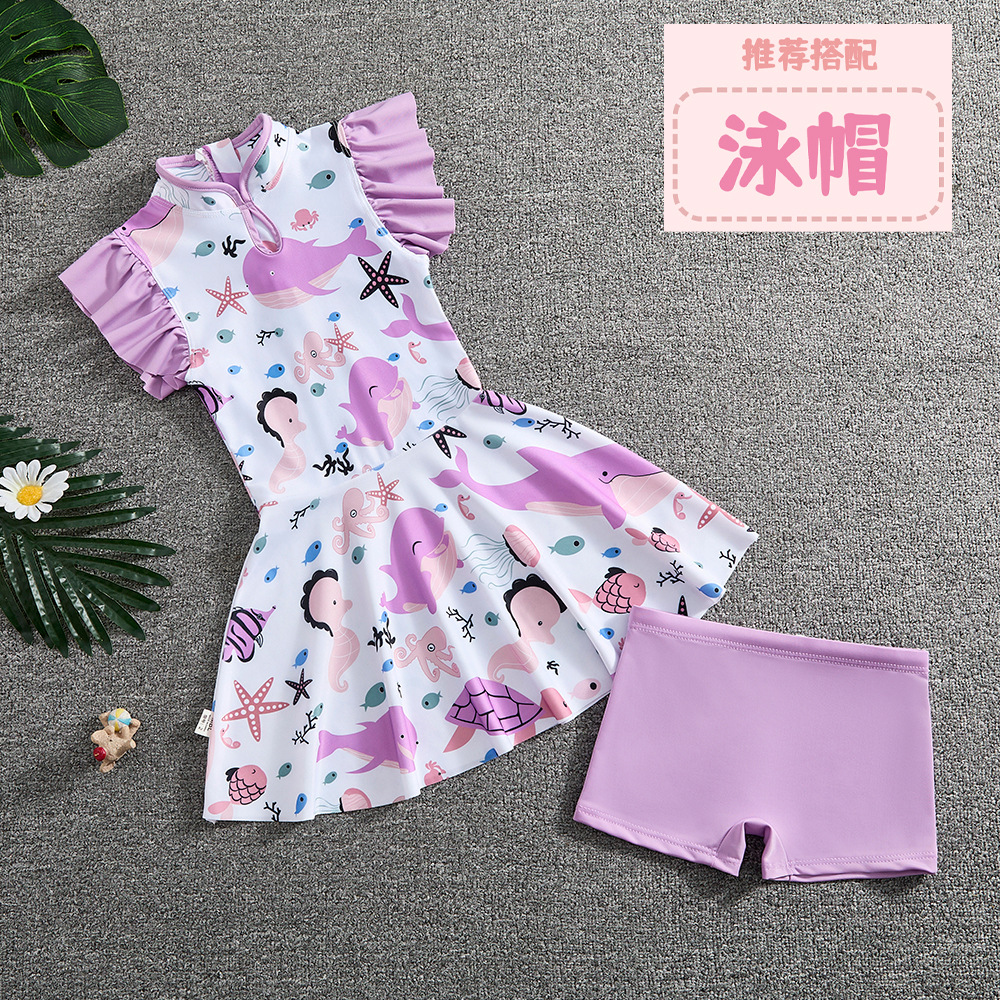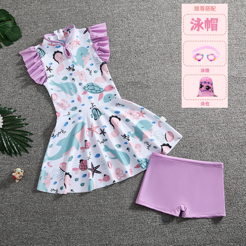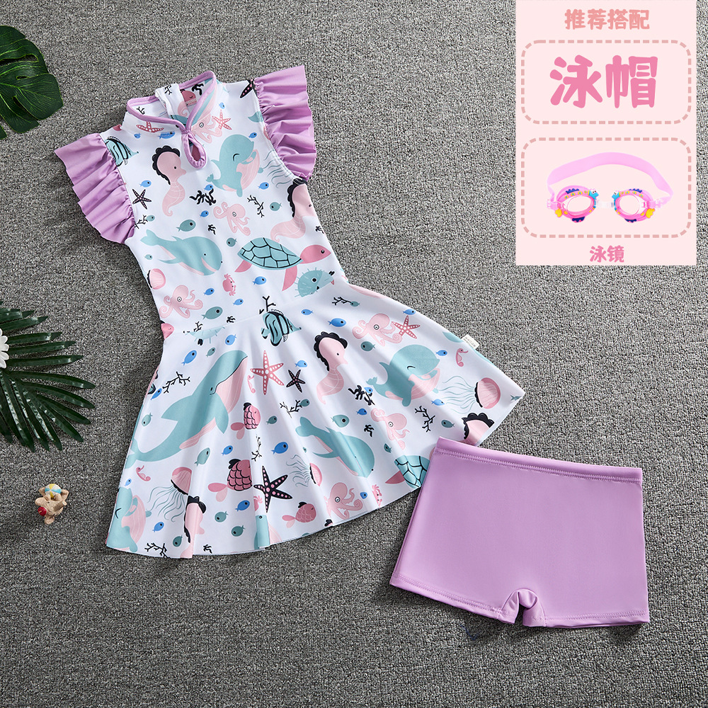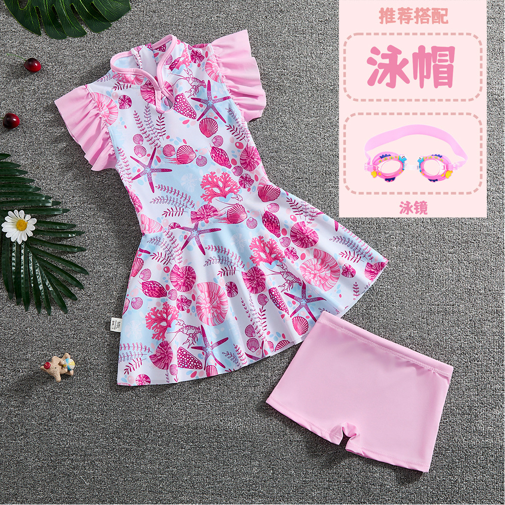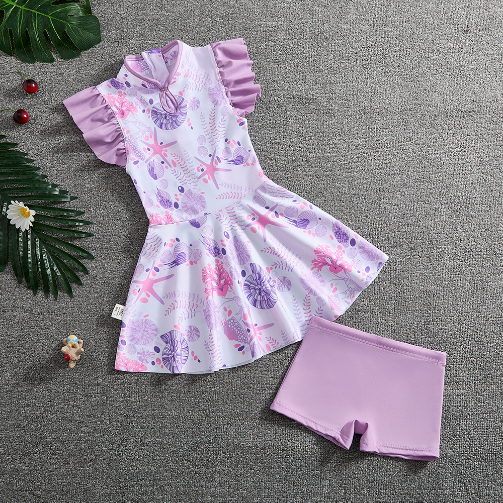 소녀 Guofeng 분할 수영복 어린이 새로운 중국 스타일 여름 새 소녀의 선 스크린 빠른 건조 원피스 수영복 트렌디