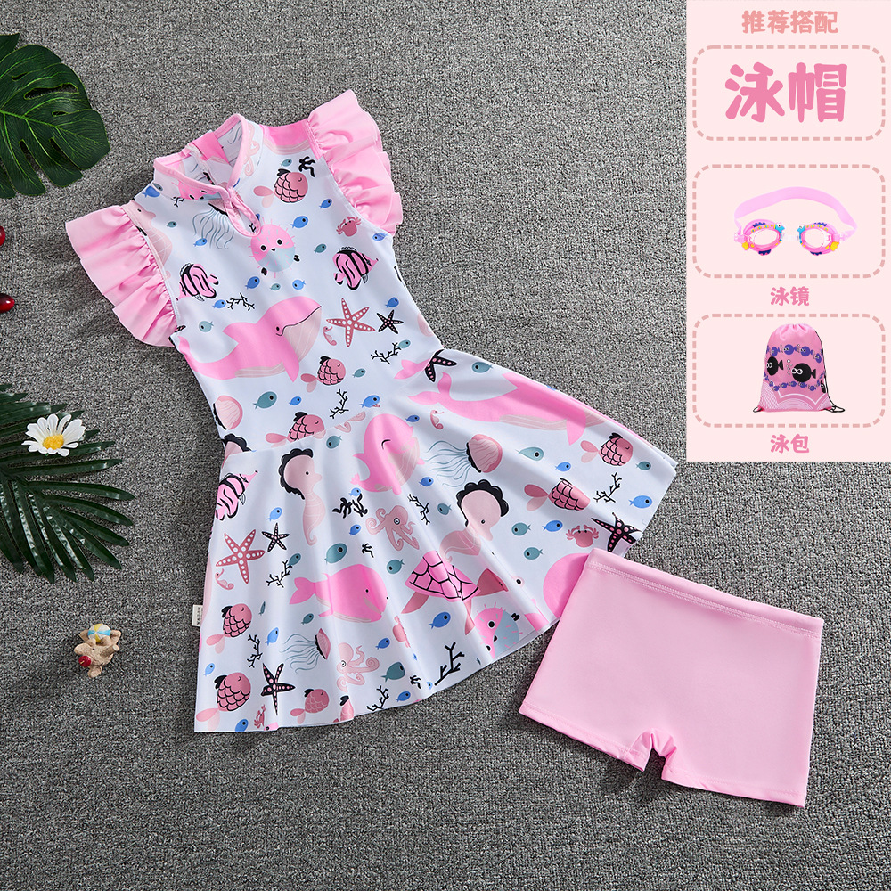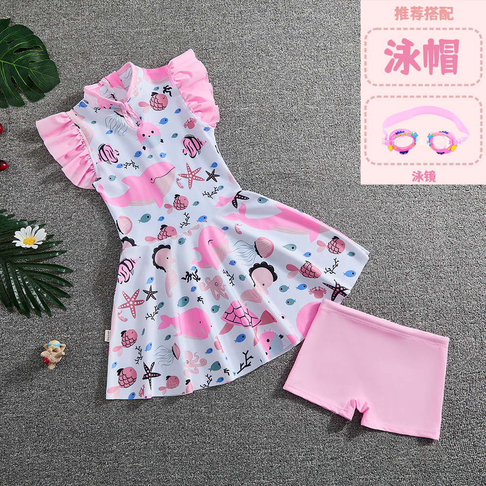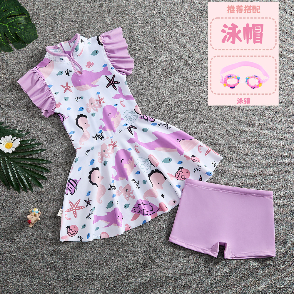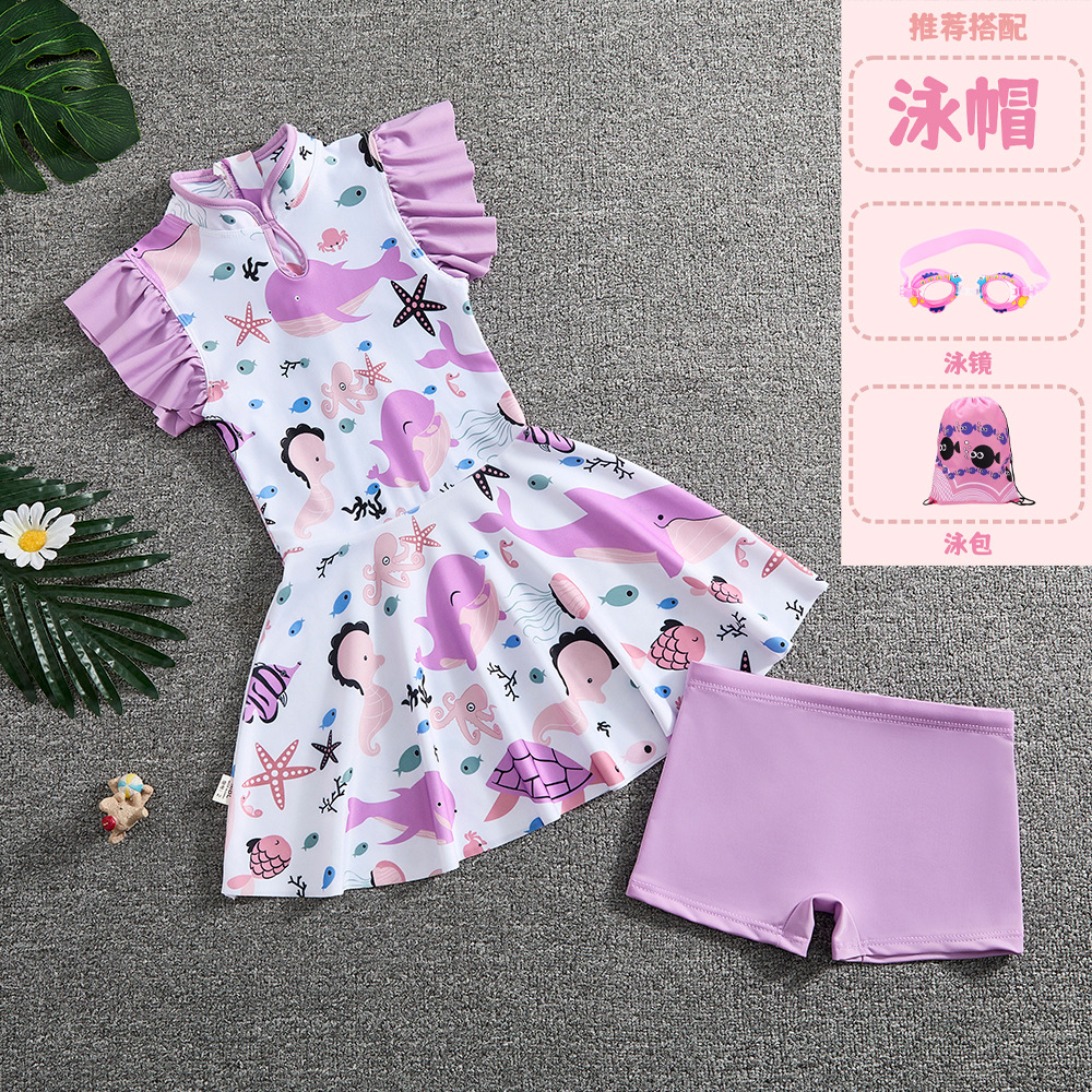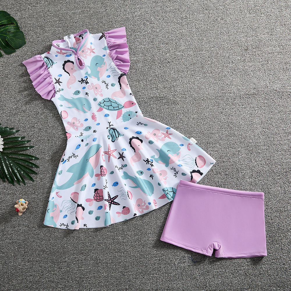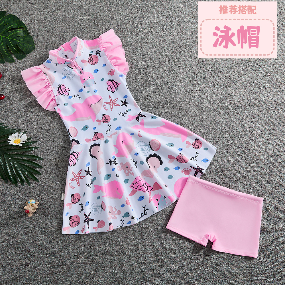소녀 Guofeng 분할 수영복 어린이 새로운 중국 스타일 여름 새 소녀의 선 스크린 빠른 건조 원피스 수영복 트렌디