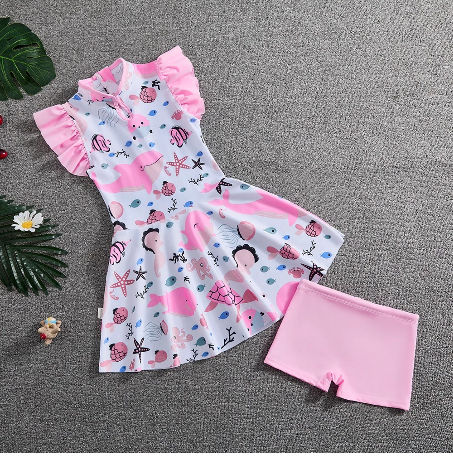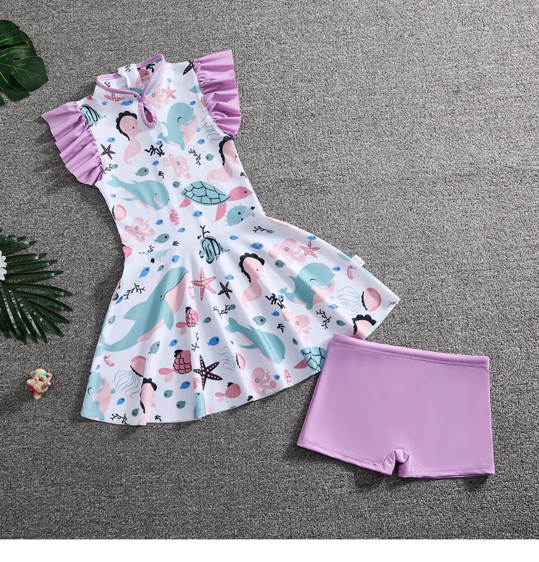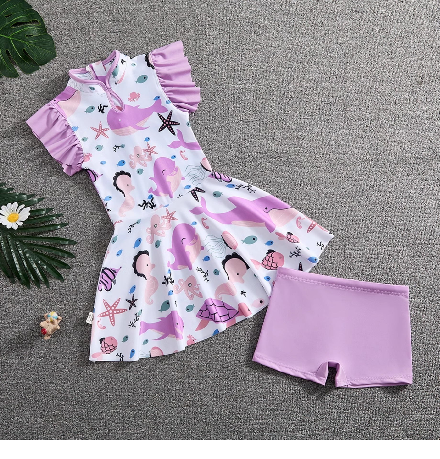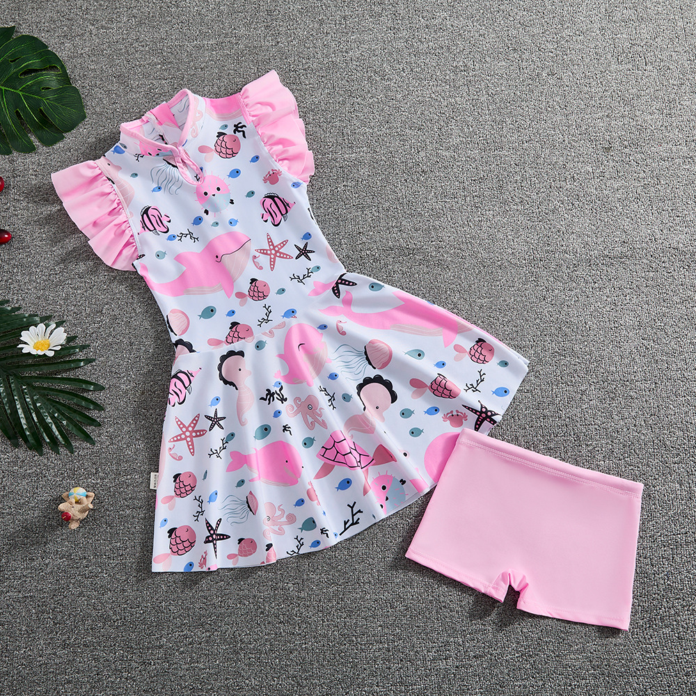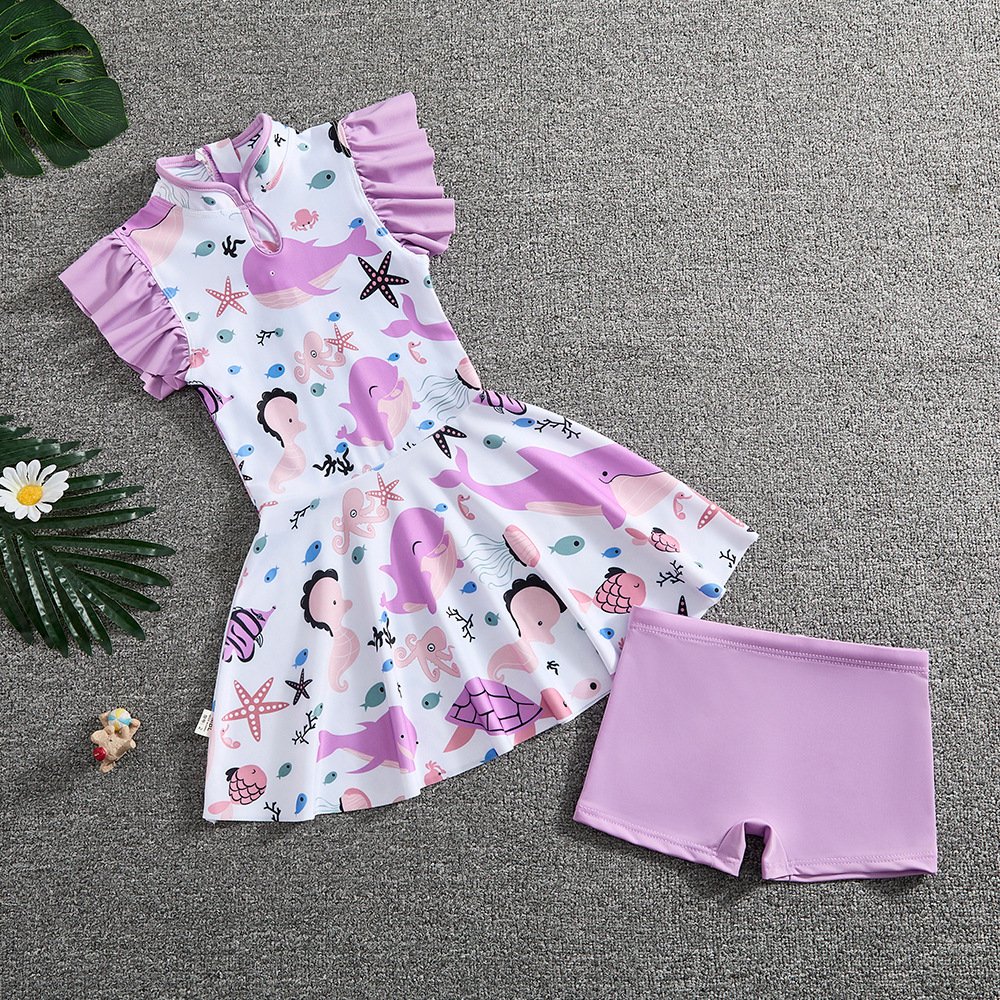 소녀 Guofeng 분할 수영복 어린이 새로운 중국 스타일 여름 새 소녀의 선 스크린 빠른 건조 원피스 수영복 트렌디