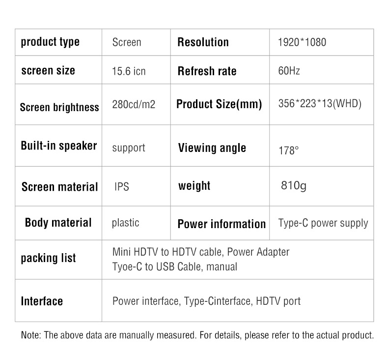 브래킷 휴대 전화 컴퓨터 외부 확장 화면 15.6 인치 HD 휴대용 디스플레이 원와이어 터치스토어 가기