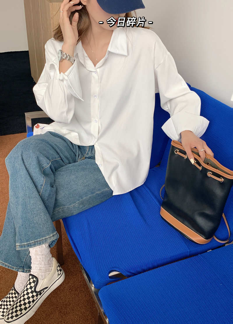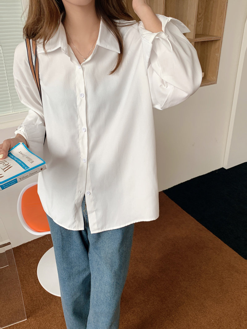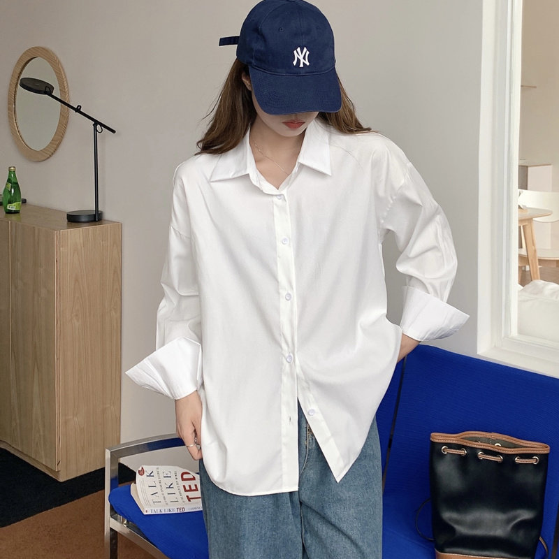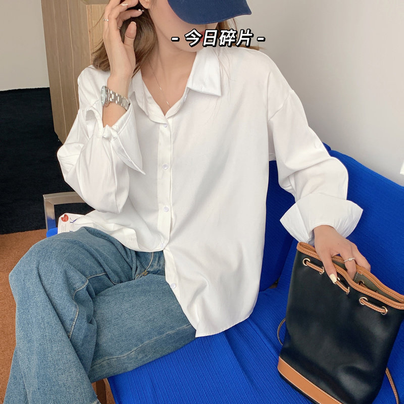 봄과 가을 캐주얼 셔츠 여성 디자인 센스 긴 소매 셔츠 재킷 느슨한 한국 스타일 중간 길이 Ins 화이트 탑스토어 가기