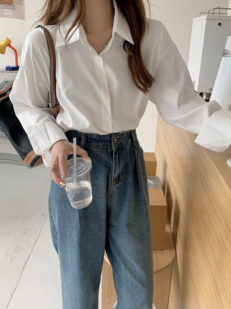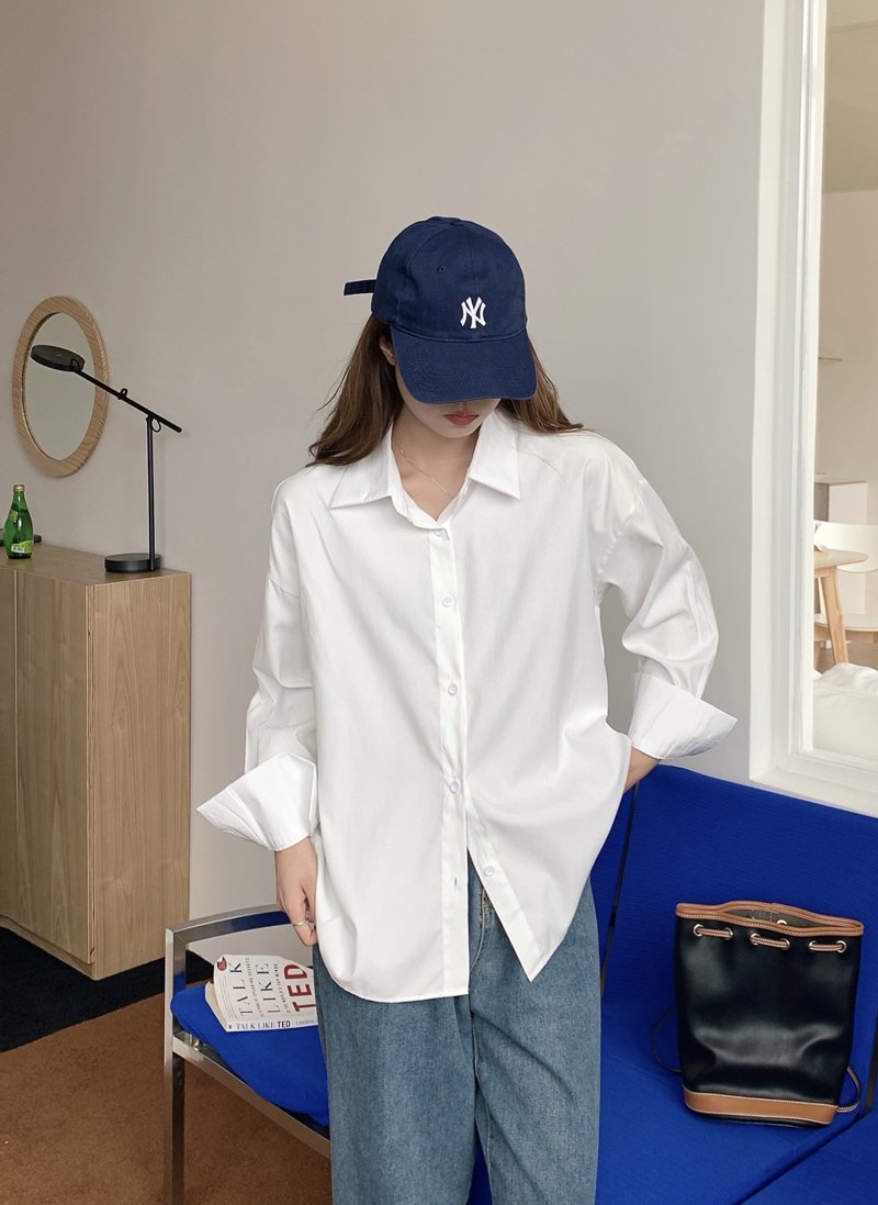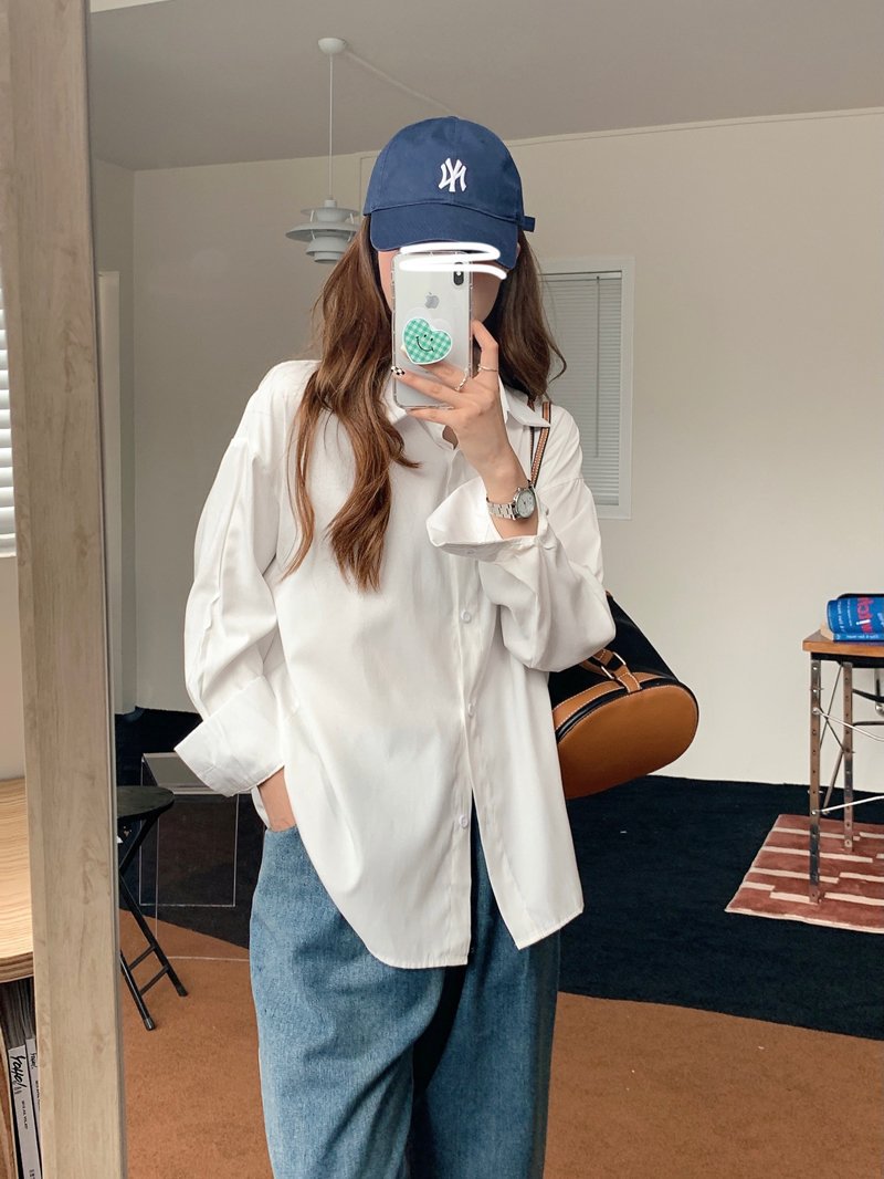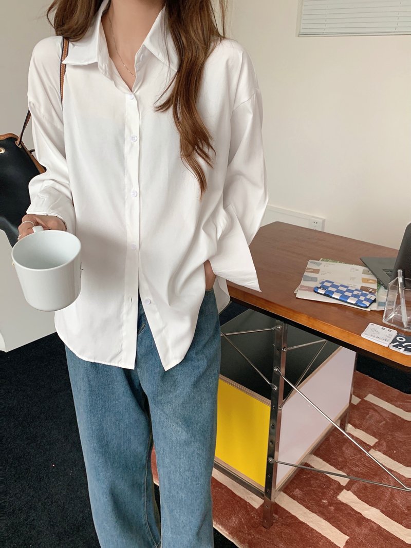 봄과 가을 캐주얼 셔츠 여성 디자인 센스 긴 소매 셔츠 재킷 느슨한 한국 스타일 중간 길이 Ins 화이트 탑스토어 가기