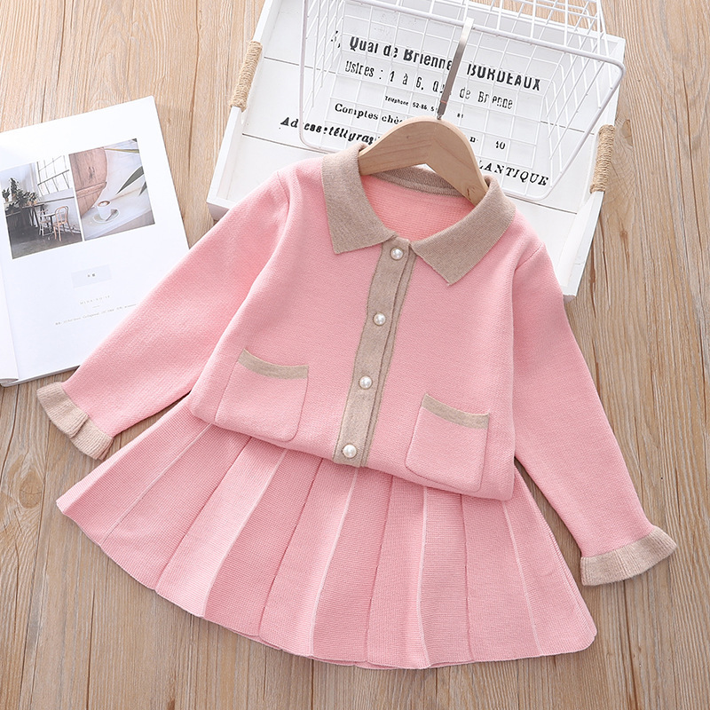 가을과 겨울 소녀 작은 샤넬 스타일 스웨터 카디건 스커트 2 피스 세트 3-5 세 소녀 우아한 스웨터 원피스